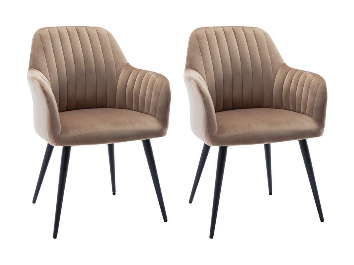 Vente-unique, Lot de 2 chaises avec accoudoirs ELEANA Velours Métal