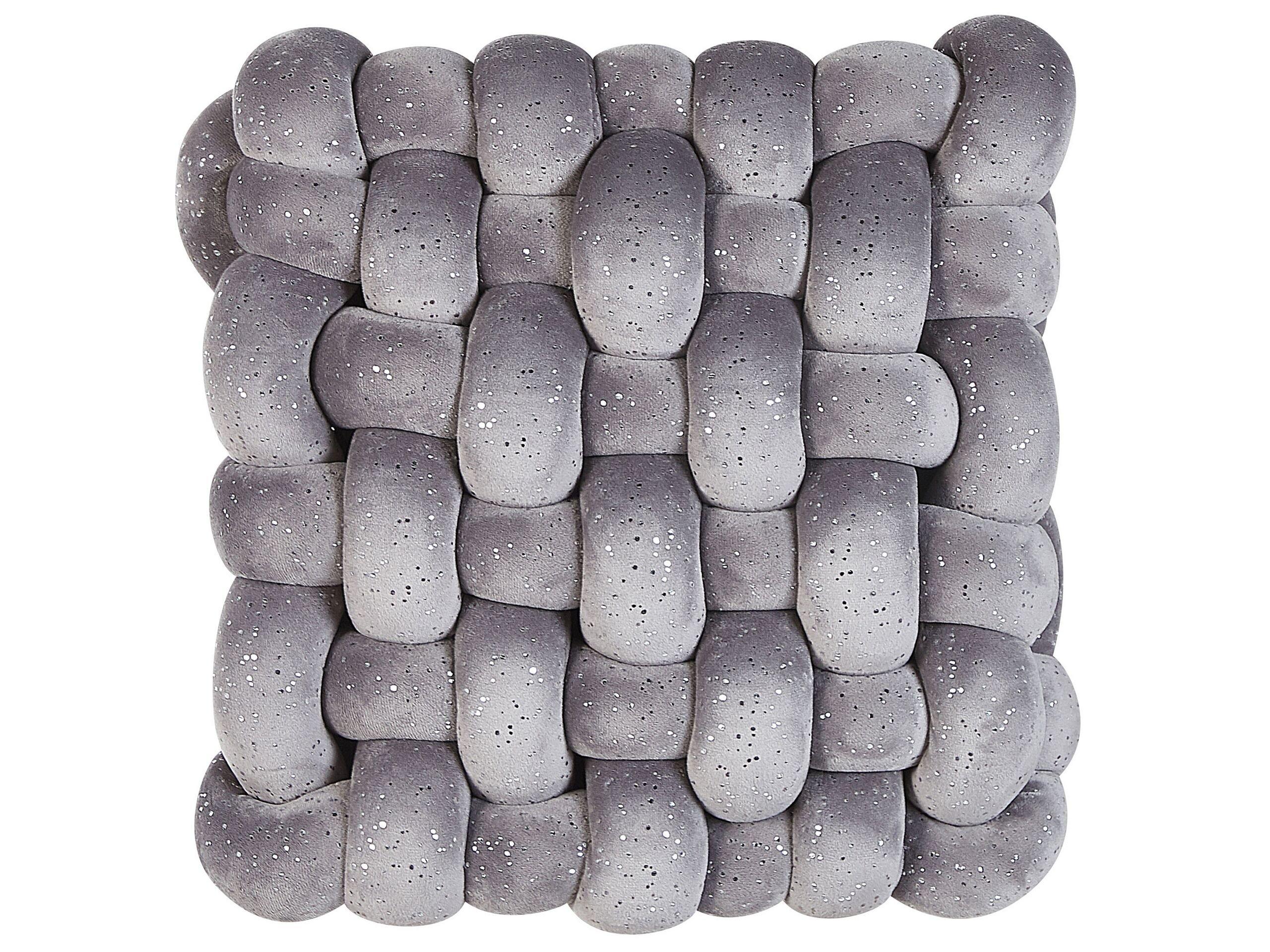 Coussin noeud en forme de tissage gris à paillettes. Si vous êtes à la recherche d'un accessoire intéressant à placer dans votre chambre, ce coussin est le choix idéal pour vous. Sa forme nouée unique s'inspire des dernières tendances et donnera du relief à la décoration de la pièce dans laquelle il est placé. Enveloppé dans un tissu doux et moelleux avec des paillettes imprimées, il est aussi accueillant que décoratif.