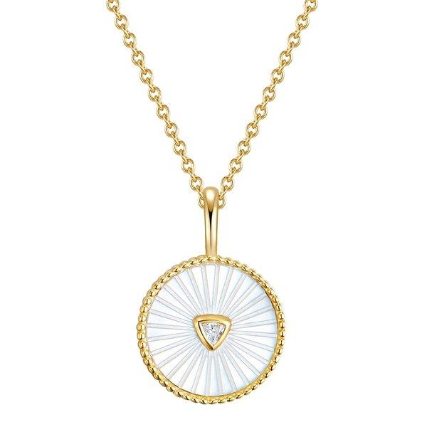 Les chaînes Medaillon sont la pièce informatique de la saison, comme ce modèle du Munich Labely à Munich dans un design vintage enchanteur et avec un noble mélange de matériaux: la bande-annonce convainc avec un bord finement pourchassé, un insert de perle scintillante et un pénichard , Zircone triangulaire -Crystal comme le centre. Le médaillon pend sur une chaîne d'ancrage en filigrane qui peut être ajusté rapidement et facilement en longueur grâce à une pièce d'extension avec une fermeture à ressort. La chaîne et la remorque sont en argent sterling de haute qualité et raffinées avec de l'or jaune.