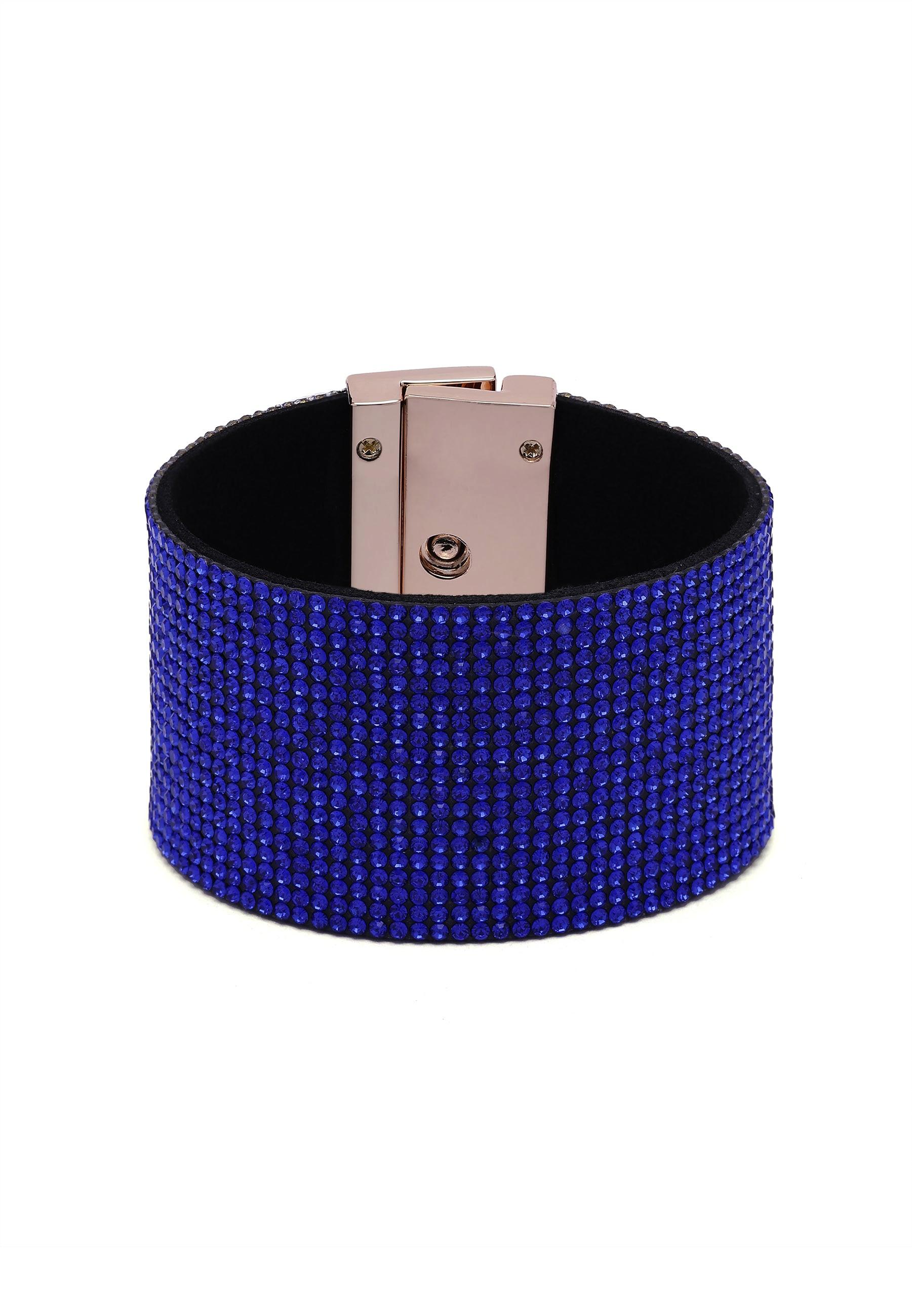 Habillez votre poignet d'une aura de diva. Ce large bracelet manchette en cuir est orné de cristaux bleus, créant un éclat bleu royal digne des tapis rouges. Doublé de daim doux et doté d'un fermoir élégant et poli, c'est une pièce audacieuse et luxueuse, idéale pour les soirées où vous souhaitez attirer tous les regards. Dimensions : Diamètre 6,5 cm, Longueur 20 cm, Largeur 4 cm | Placage : Plaqué or | Fermeture : Boucle magnétique