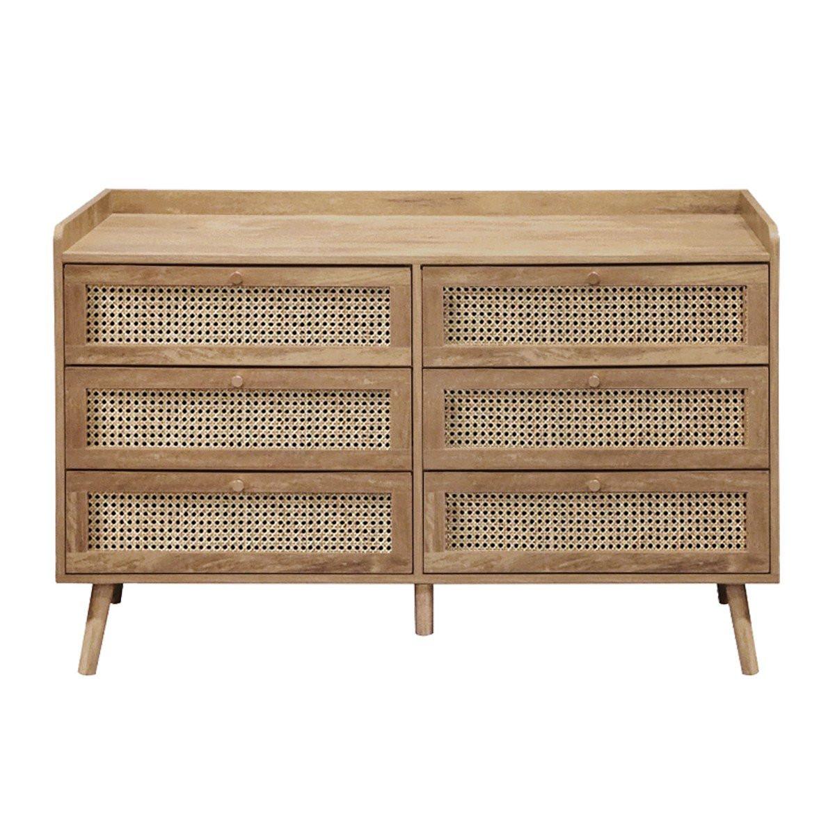 - 6 façades de tiroir en rotin naturel avec fond en décor bois.