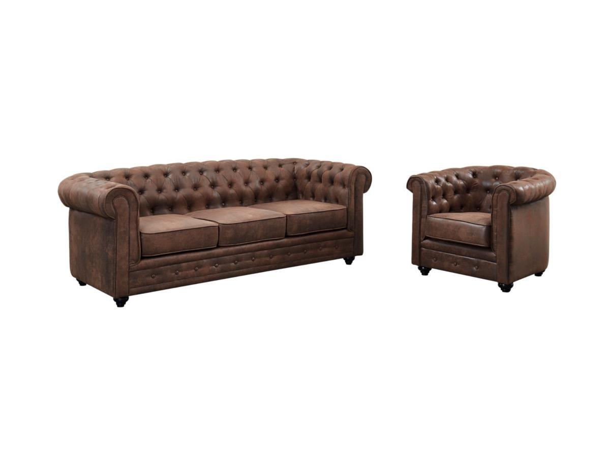 Vente-unique Canapé 3 places fauteuil CHESTERFIELD en microfibre aspect cuir vieilli