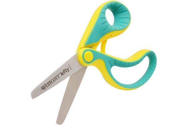 SOFTGRIP - Junior Schere Die Westcott Ergo Jr. Schere aus dem Hause Acme wurde in den USA gemeinsam mit der US Ergonomics Organization entwickelt. Die ergonomische Form inklusive weicher Softgriffzonen ist speziell auf die Bedürfnisse von Kindern im Alter zwischen 4 und 6 Jahren abgestimmt, welche oft noch Unterstützung beim Schneiden benötigen. Die optimierte Griffform sorgt für mehr Komfort und Kontrolle, was ein wesentlich weniger anstrengendes Schneiden von Papier ermöglicht. Dank der besseren Handhabung und der integrierten Öffnungshilfe wird eine höhere Schneideeffizienz um bis zu 50% erlangt. Abgerundete, hochwertige Klingen sorgen für mehr Sicherheit und Präzision. Die Ergo Jr. überzeugt durch ihre innovative Form in leuchtenden Farben und bietet so viel Spaß beim Basteln und Schneiden. Erhältlich in Rot und Blau für Rechtshänder sowie Gelb/Türkis für Linkshänder. 5 Jahre Garantie. Ergonomische Junior-Schere mit weichem Griff und Öffnungshilfe Optimierte Form für Komfort, Kontrolle und Genauigkeit speziell für Kinder zwischen 4 und 6 Jahre entwickelt Integrierte Öffnungshilfe für weniger anstrengendes Schneiden abgerundete Klingen für mehr Schutz