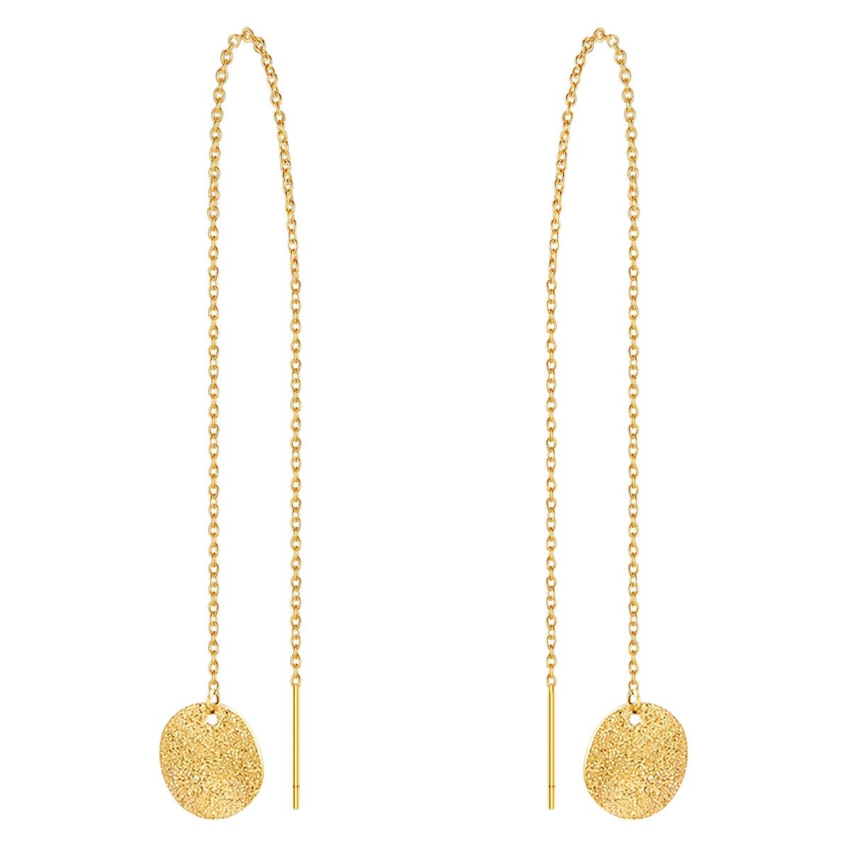 La tendance bijoux de la saison est celle des boucles d'oreilles à tirer, également connues sous le nom de boucles d'oreilles à chaîne, dans lesquelles une chaîne délicate est tirée à travers le trou de l'oreille. Cet exemple de la marque Eastside est enchanteur : une mini plaque microbillée au diamant pend au bout de la chaîne - un véritable accroche-regard ! La chaîne d'ancre et le médaillon brillent dans la lueur chaleureuse de l'acier inoxydable plaqué or jaune. Le plus du design à enfiler : les boucles d'oreilles sont sans fermoir et donc très faciles à manipuler. Une pièce incontournable pour les amateurs de bijoux qui aiment les accessoires sophistiqués et qui, en même temps, sont très exigeants quant à la qualité des matériaux de leurs bijoux !