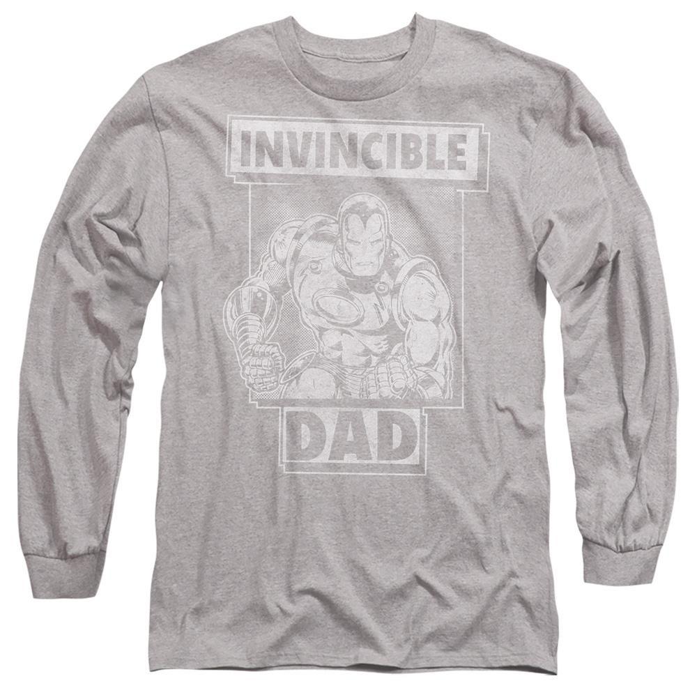 Ce T-shirt présente un imprimé graphique avec les mots « Invincible Dad » sur le devant. Il est conçu avec un col ras-du-cou classique et des manches courtes, offrant une coupe confortable pour un usage quotidien.