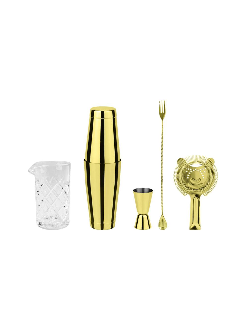 Type de matériau : Métal, Matériau : Acier inoxydable, Couleur des détails : Blanc, Or, Ensemble : Oui, Capacité : 0.79 l, Mode de fonctionnement : ManuelSet comprenant : Carafe, passoire, shaker Boston, jigger et cuillère/plateau 30 cmCapacité : 0.79 lDans la couleur or/blancEn acier inoxydableLavage à la main obligatoire