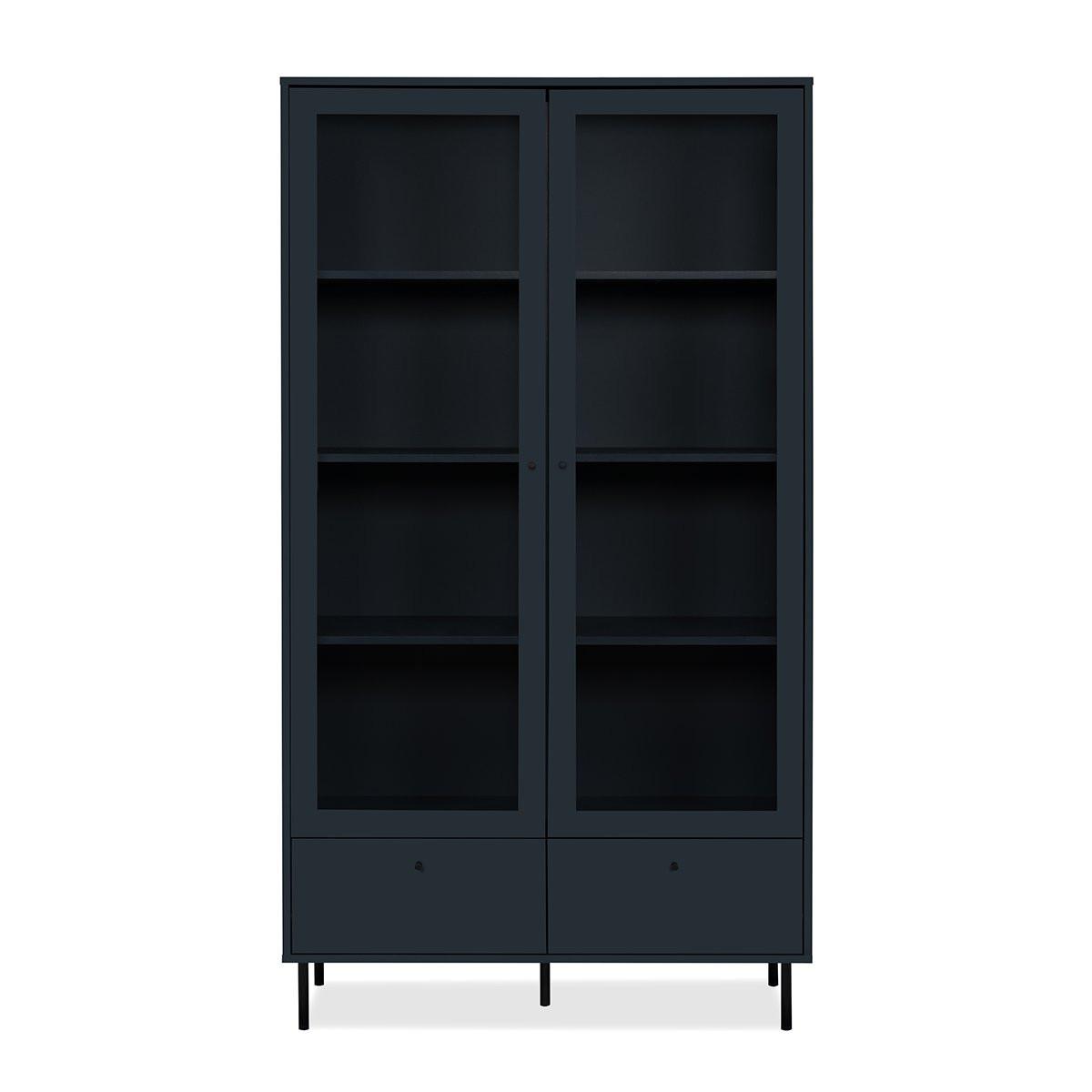 Calicosy, Vitrine 2 Portes Vitrées et 2 Tiroirs Bleu Marine H183 cm - BOGOTA