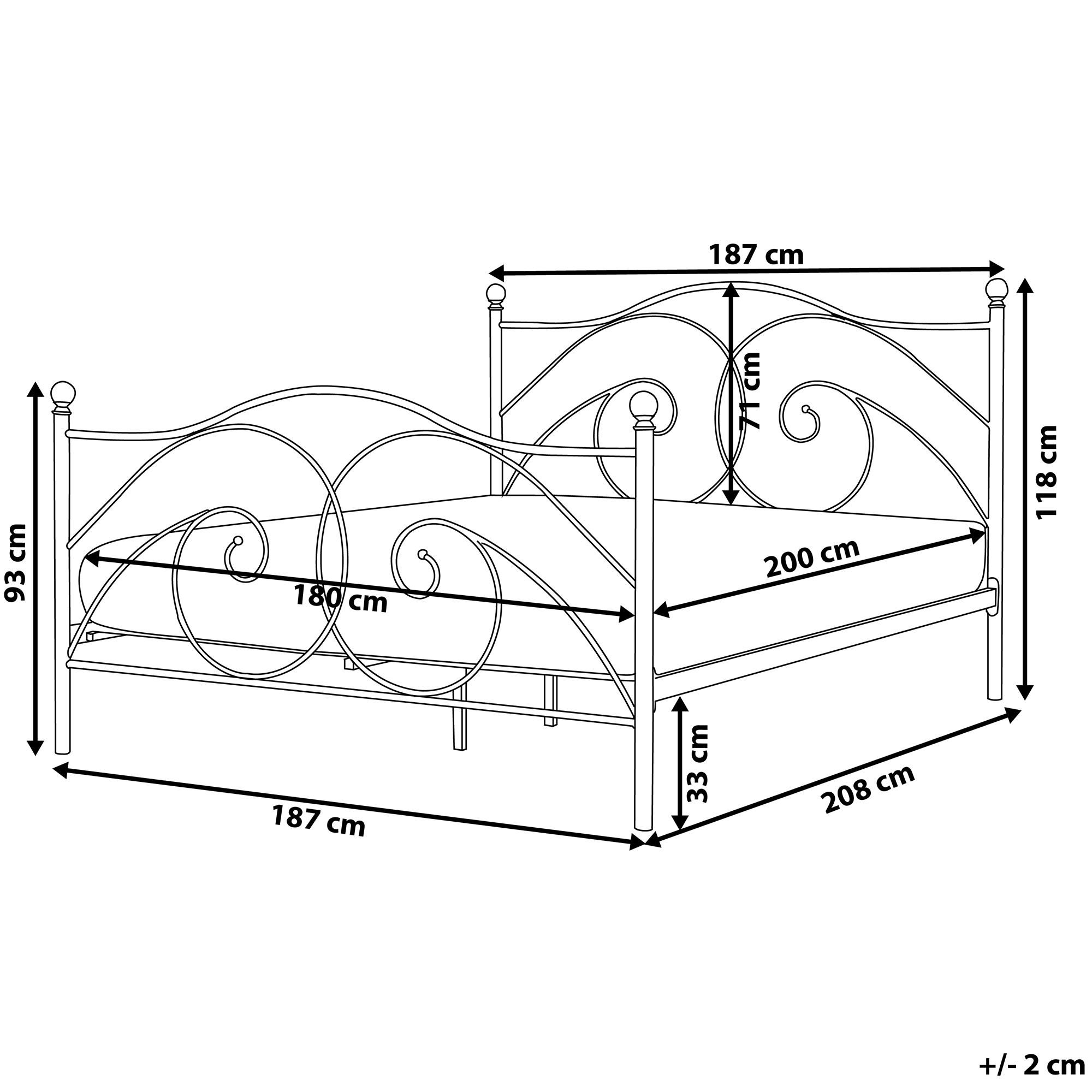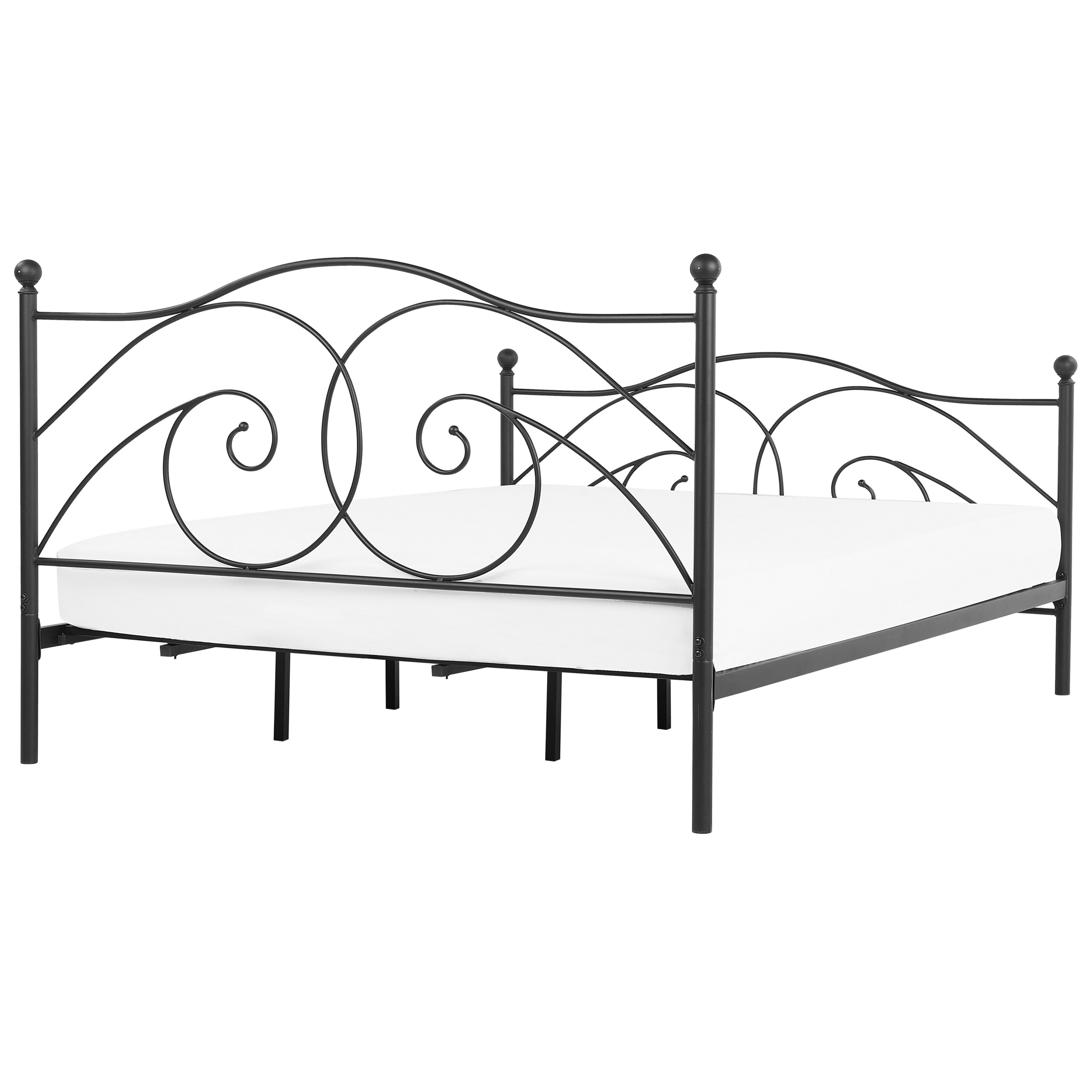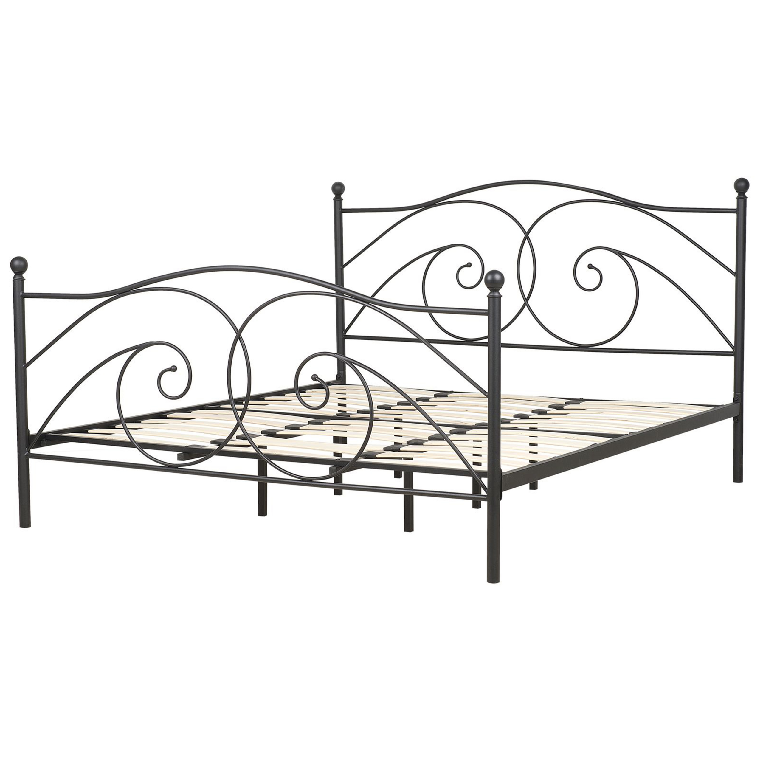 Lit deux places romantique. Ce lit double au style intemporel est une véritable invitation au sommeil. Le cadre de lit noir avec de jolis ornements arrondis donnera un aspect élégant et romantique à votre chambre. La construction solide en métal et le sommier à lattes offrent le soutien nécessaire et un confort de couchage optimal.