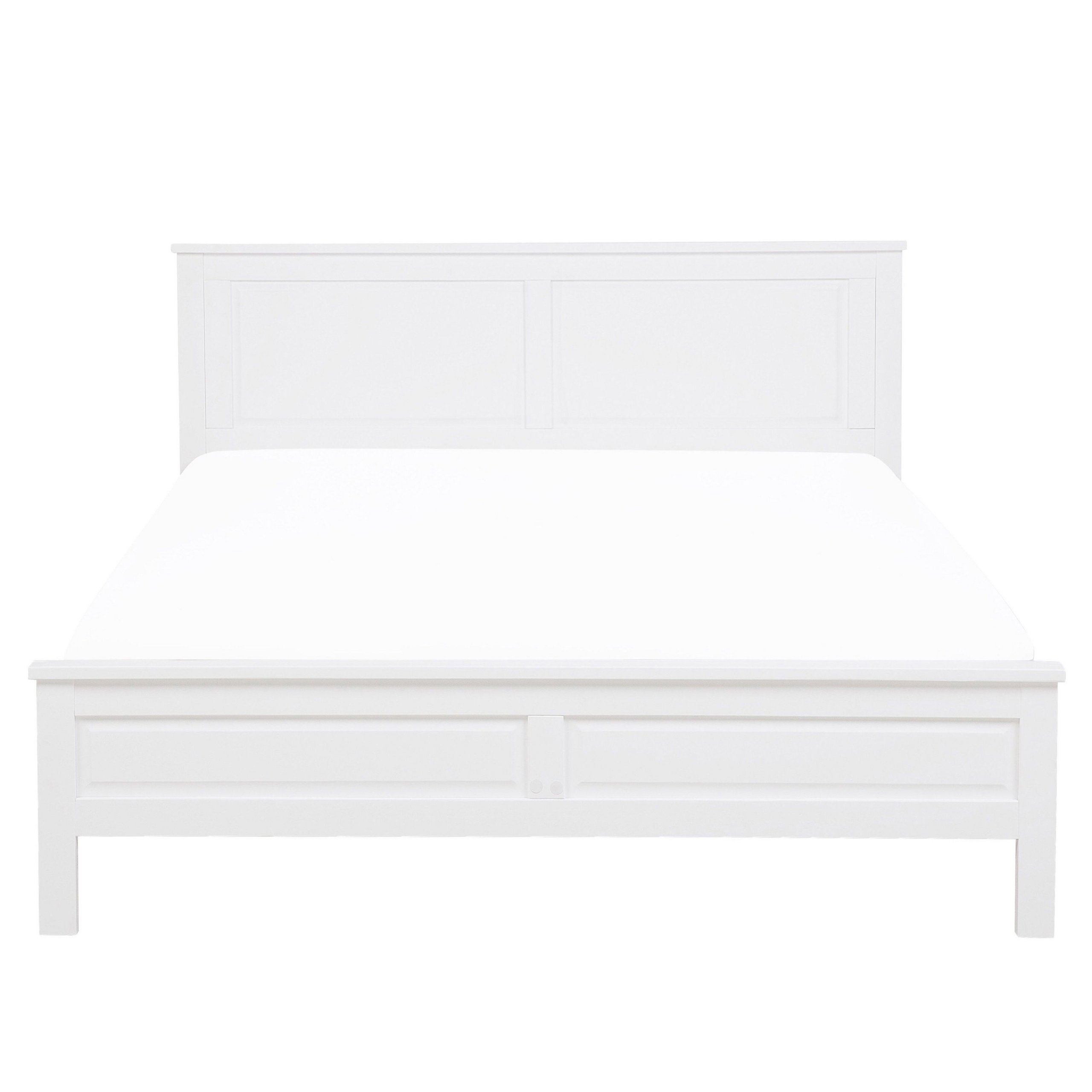 Lit double en bois de pin blanc 160 x 200 cm. Les lignes droites soulignent parfaitement la beauté intemporelle de ce lit double. Tout le cadre est de couleur blanche, seul les bords sont de couleur bois naturelle décorative, ce qui donne un style maison de campagne et donc un charme supplémentaire. Le lit est fabriqué en xxx blanc et convient pour les matelas avec mesurant 160 x 200 cm. Le sommier à lattes est compris dans loffre robuste contribue à une bonne capacité de charge et un confort optimal.