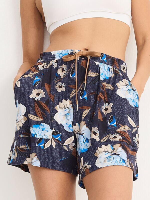 Ce bermuda lounge offre confort et style pour des moments de détente. Le tissu modal doux procure une sensation agréable sur la peau, le rendant idéal pour se prélasser à la maison ou pour des sorties décontractées. Le design présente un imprimé à la mode, ajoutant une touche d'élégance à cette pièce confortable.