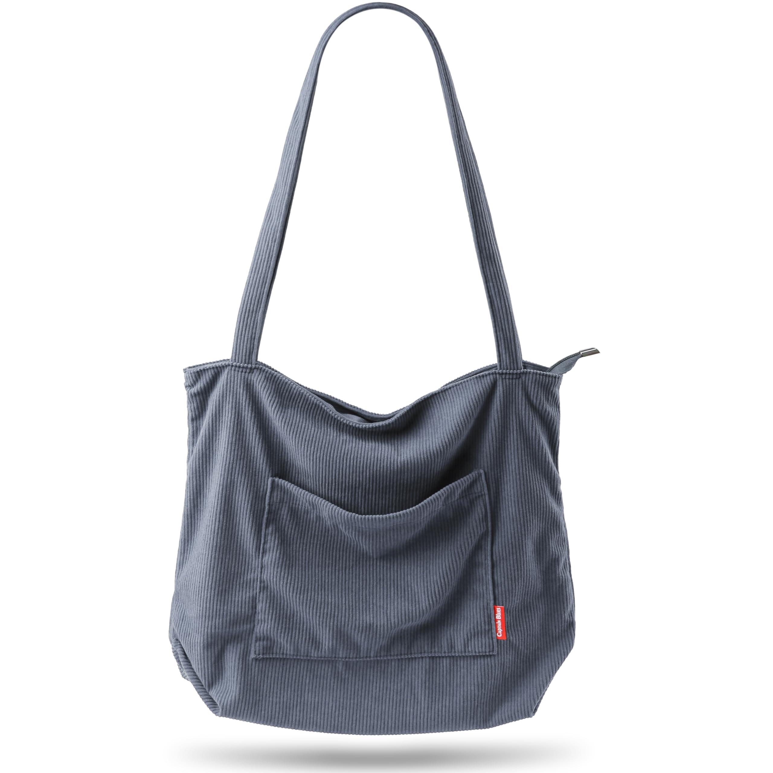 Only-bags.store, Sac à Bandoulière en Velours Côtelé avec Fermeture Éclair Grand Sac Fourre-tout