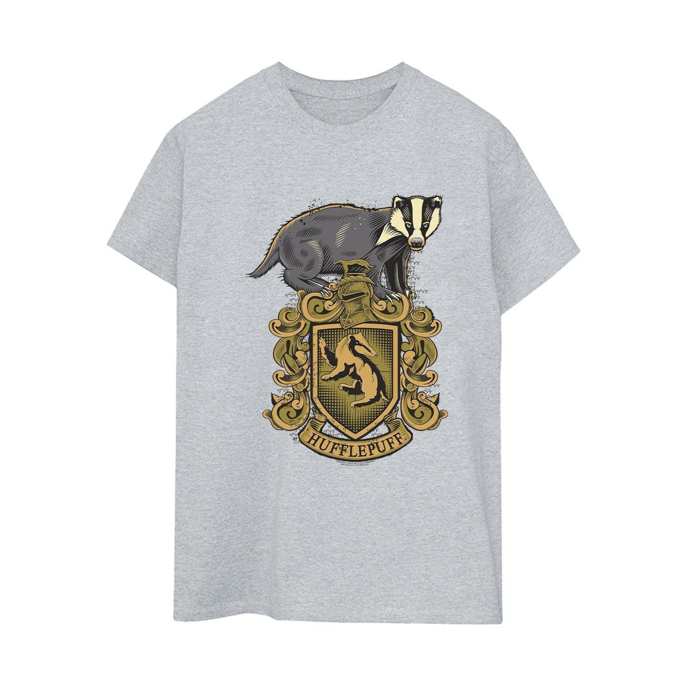 Ce T-shirt Hufflepuff avec un imprimé graphique distinctif est un excellent ajout à la garde-robe de tout fan. Le design met en valeur la mascotte emblématique du blaireau sur le blason de Hufflepuff, rendu avec des détails complexes et une esthétique classique.