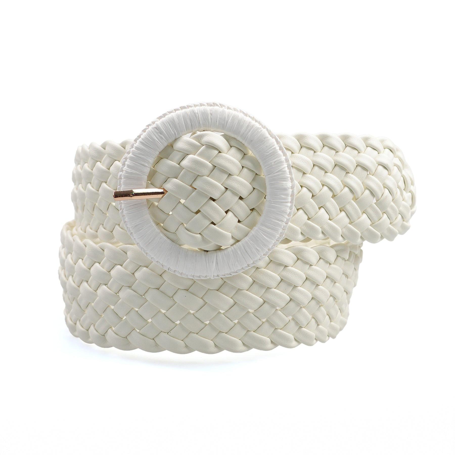 La ceinture tressée à boucle ronde couleur blanche est un accessoire élégant et texturé qui ajoute un peu de charme rustique et de sophistication moderne à toute tenue. Le design de tressage complexe donne à la ceinture un aspect unique et tissé, tandis que la boucle ronde apporte un élément d'intemporalité et d'équilibre. Cette ceinture est à la fois captivante et polyvalente, parfaite pour ajouter un détail d'affirmation à votre garde-robe. La ceinture ajoute une vibe décontractée et bohème à la tenue, parfaite pour une journée à la plage ou une sortie informelle entre amis.