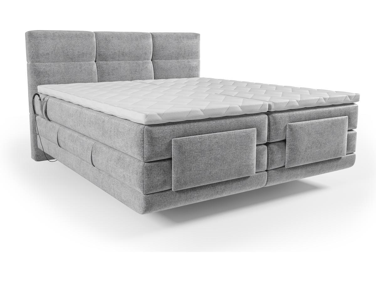 Vente-unique Ensemble Boxspring tête de lit capitonnée + sommiers relaxation électrique + matelas + surmatelas - 2 x 90 x 200 cm - gris clair - LODI de PALACIO