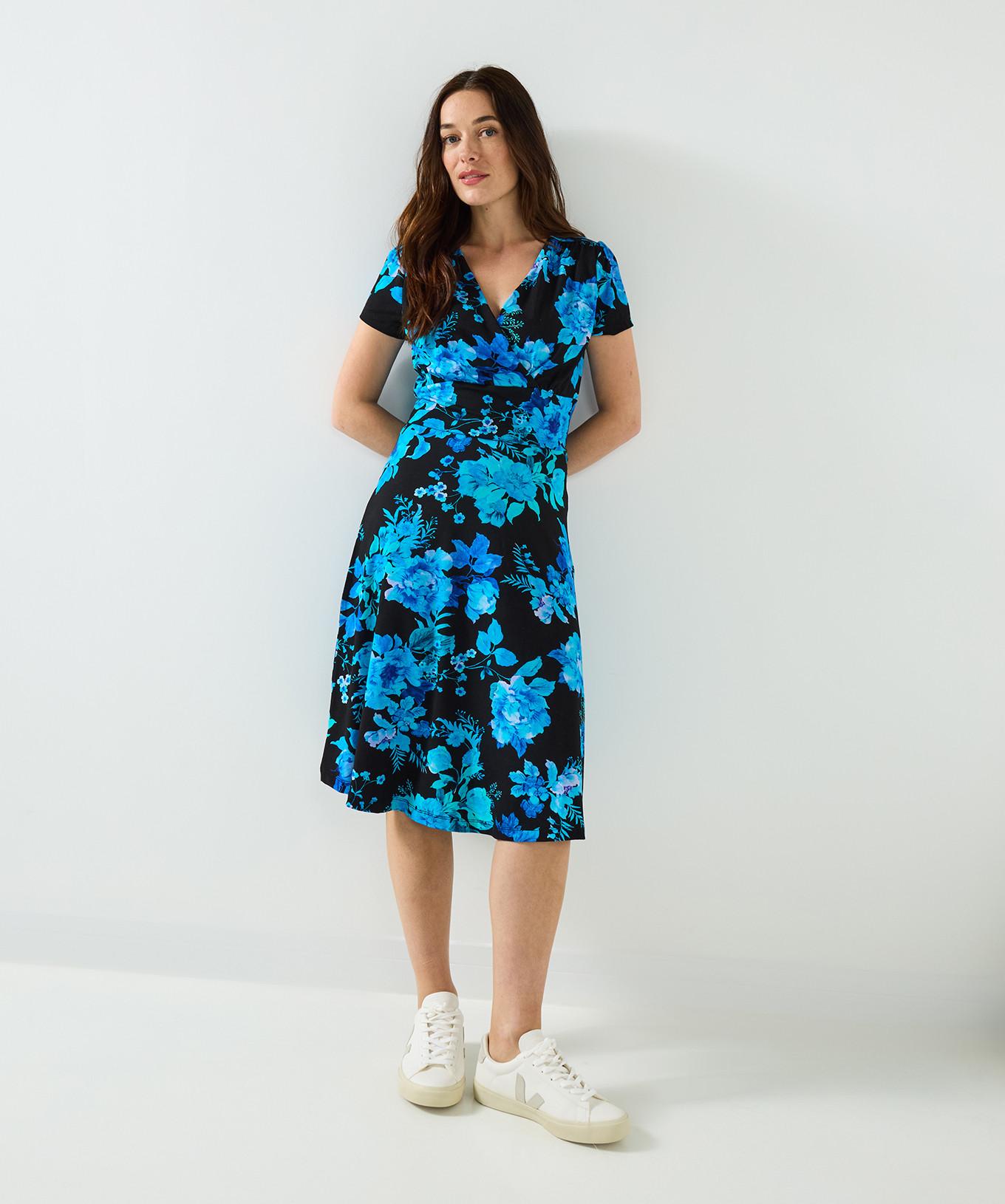 Joe Browns, Robe en jersey à motif floral d'hiver et effet portefeuille