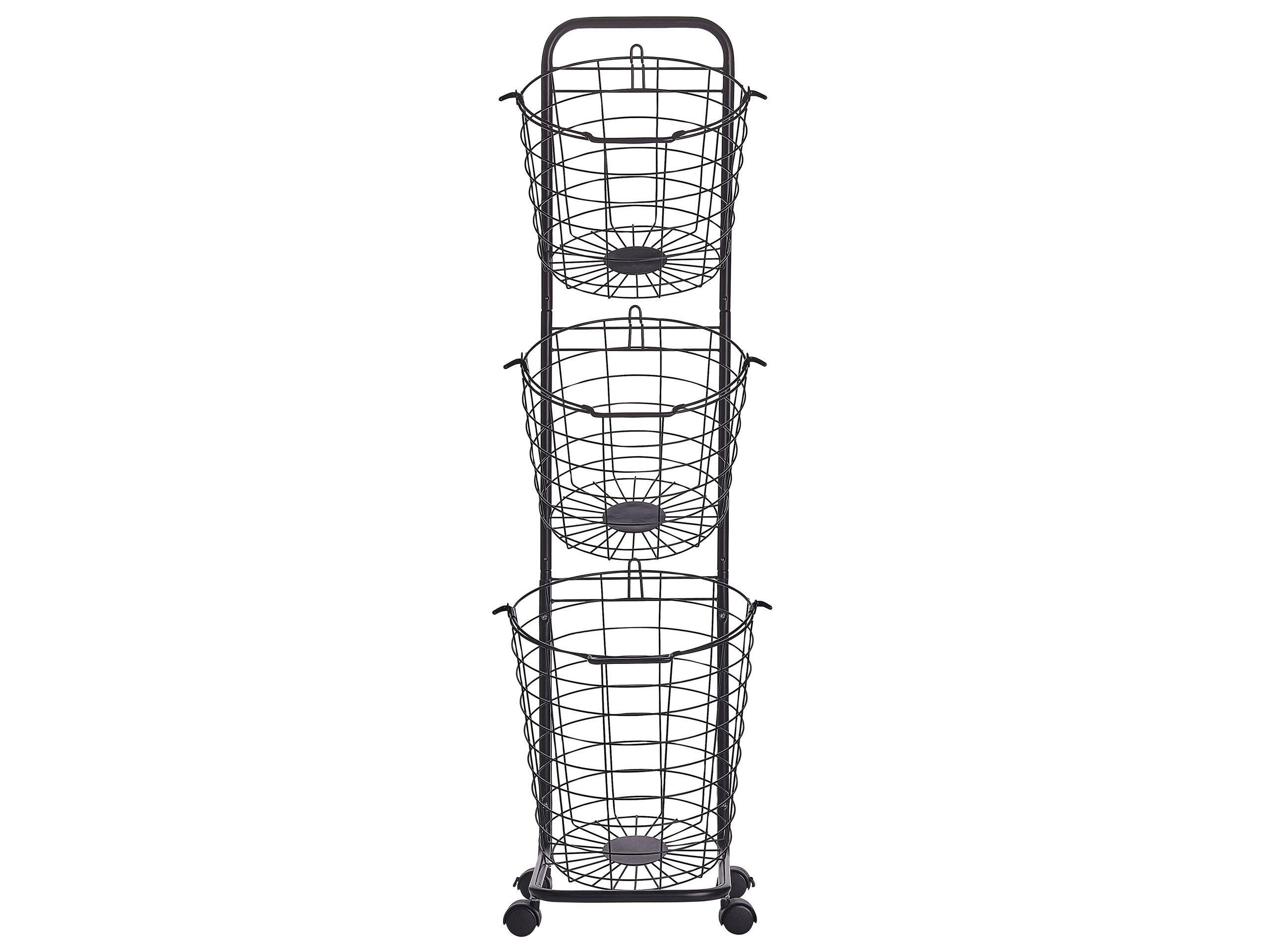 Étagère de salle de bain ou cuisine avec roulettes et 3 paniers amovibles. Cette étagère à paniers en métal noir s'avèrera vite indispensable pour garder votre maison ou appartement bien organisé et sans encombrement. Légère et facile à transporter, grâce aux roulettes pratiques, elle est un accessoire de rangement parfait pour votre salle de bain ou cuisine. Les 3 corbeilles amovibles peuvent servir comme paniers à linge ou serviettes, mais aussi à fruits et légumes. Les 3 paniers peuvent être facilement détachés du support et utilisés séparément. Côté style, cette étagère sera un ajout idéal à tous les intérieurs modernes, industriels et scandinaves.