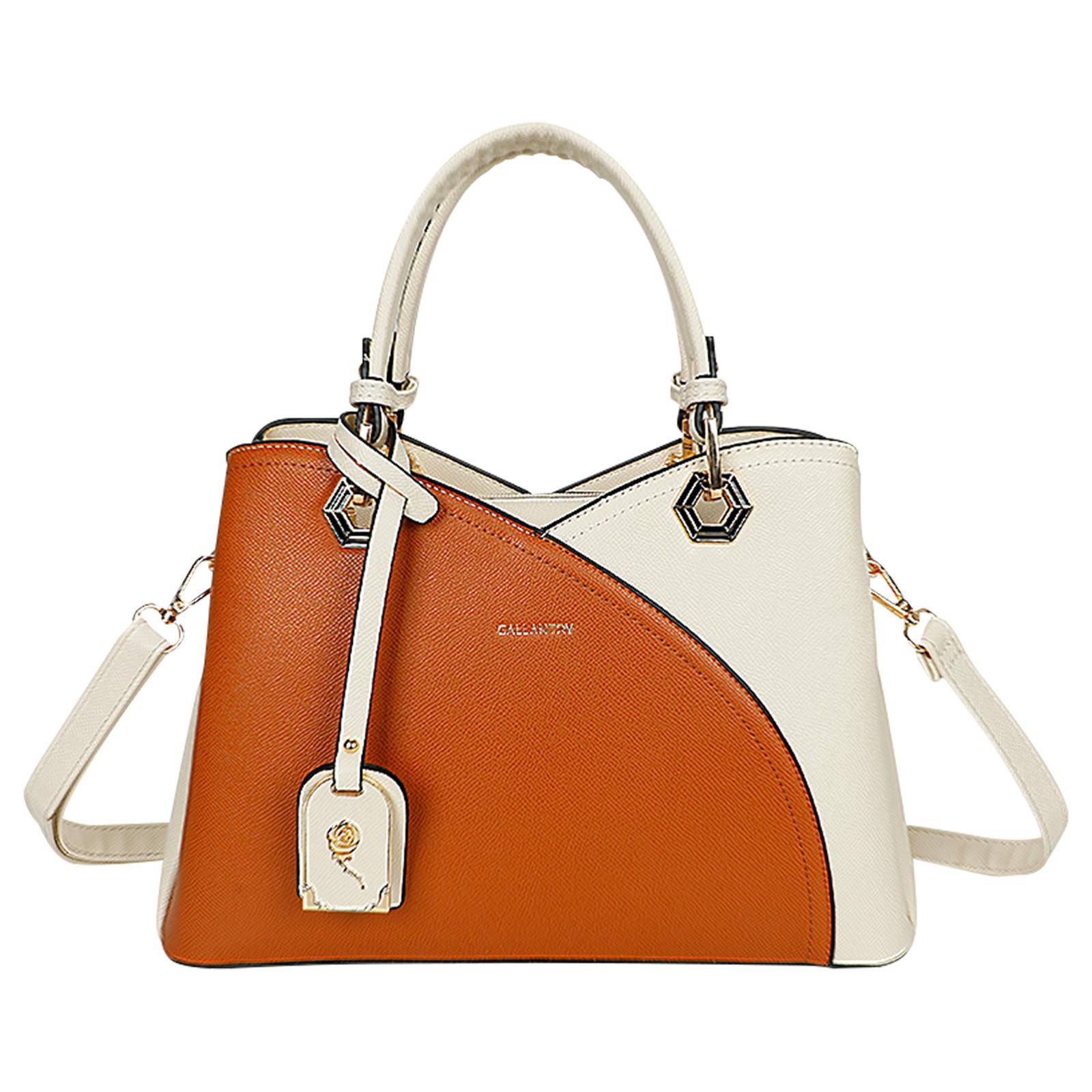 Ce sac à main bicolore est un accessoire essentiel pour la vie de tous les jours, rehaussant les tenues de jour comme de soirée. Il intègre trois compartiments spacieux, ainsi que des poches organisatrices pour divers accessoires. Le sac dispose d'une double poignée rigide ainsi que d'une bandoulière, permettant un port à la main ou à l'épaule.