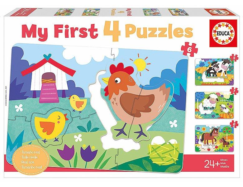 Gelegte Grösse: 23.5 x 16 cm. Das Set beinhaltet Puzzles mit 5, 6, 7 und 8 Teilen. Ideal für kleine Hände.