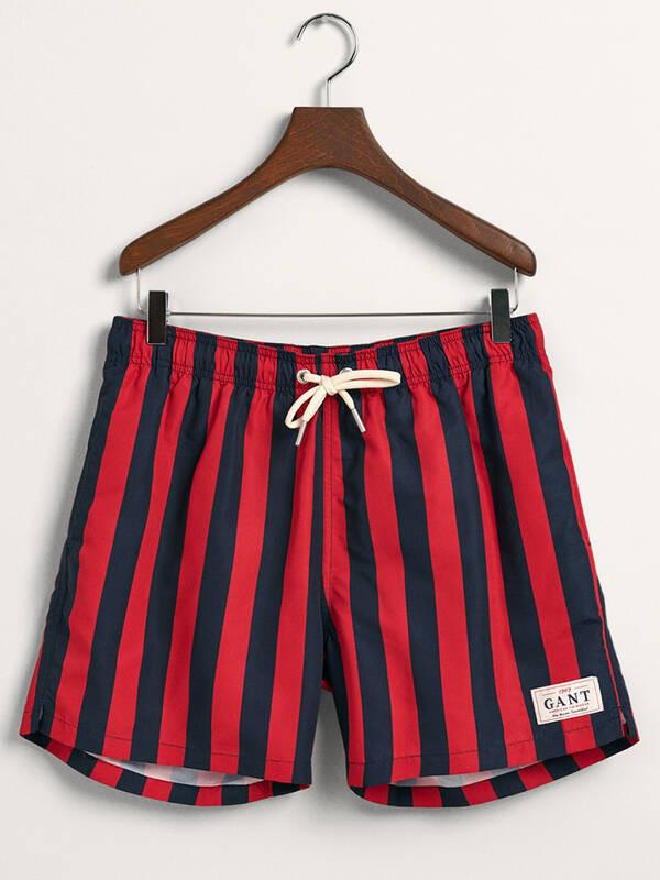 Ce short de bain présente un motif à rayures blocs audacieux, parfait pour une journée à la plage ou à la piscine. Le design comprend une taille élastique avec un cordon de serrage pour un ajustement réglable et confortable.