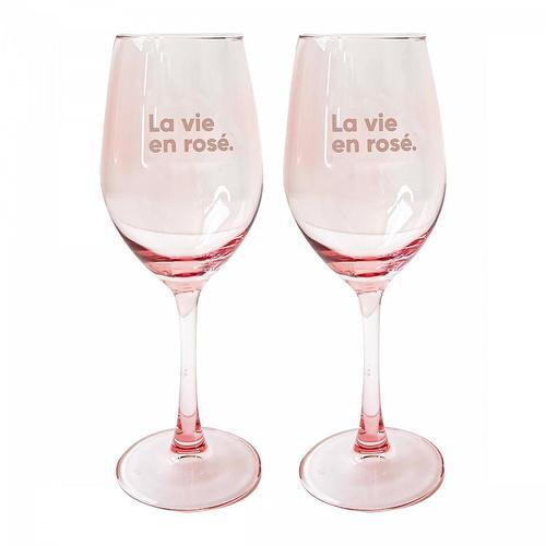 - Deux verres à vin roses avec l'inscription "La vie en rosé"
