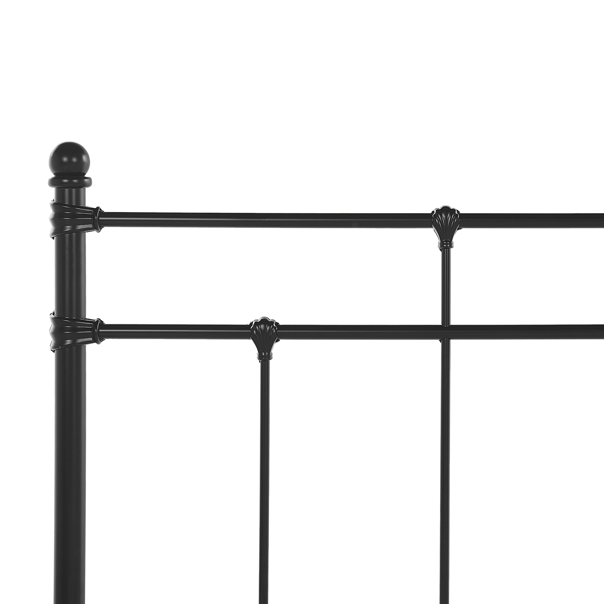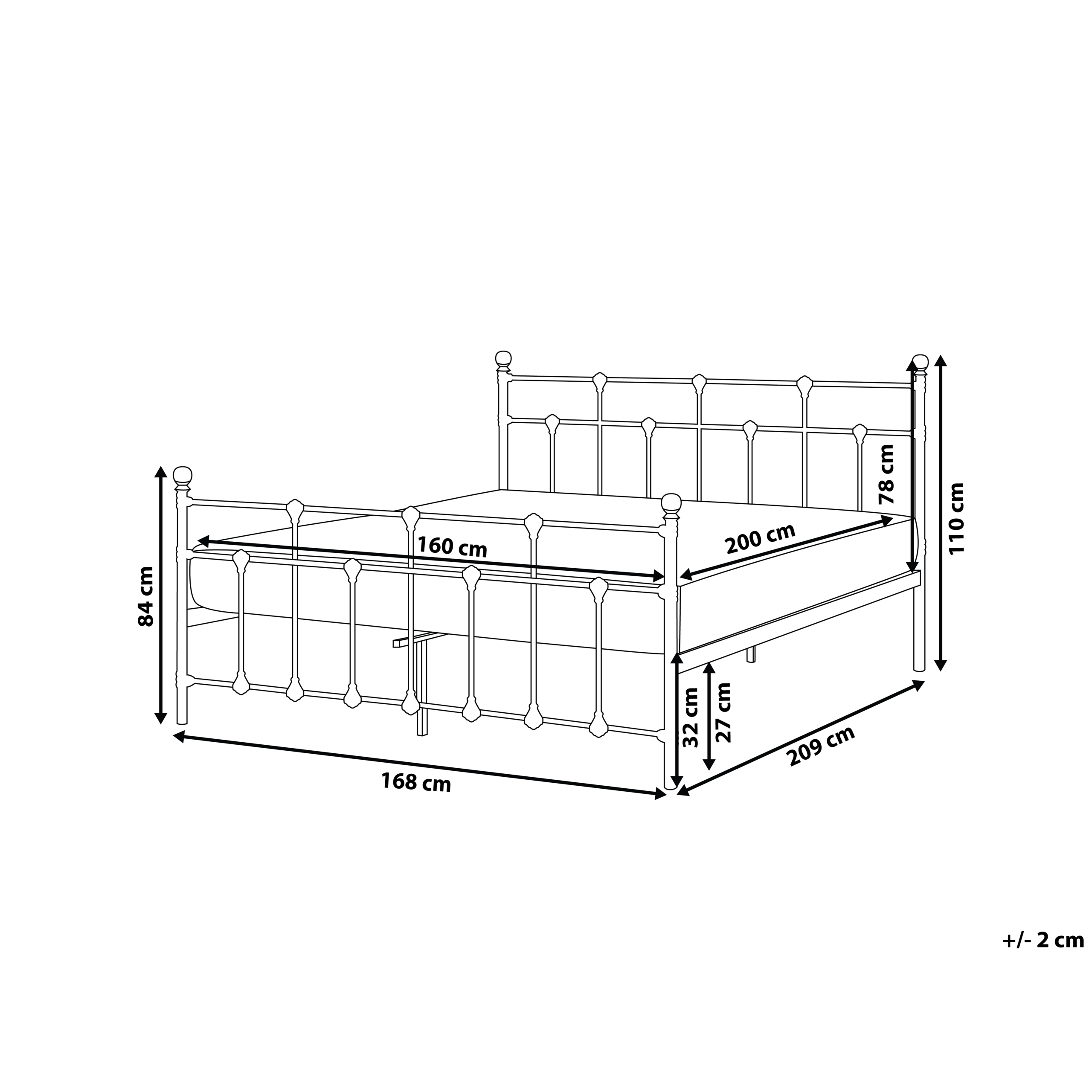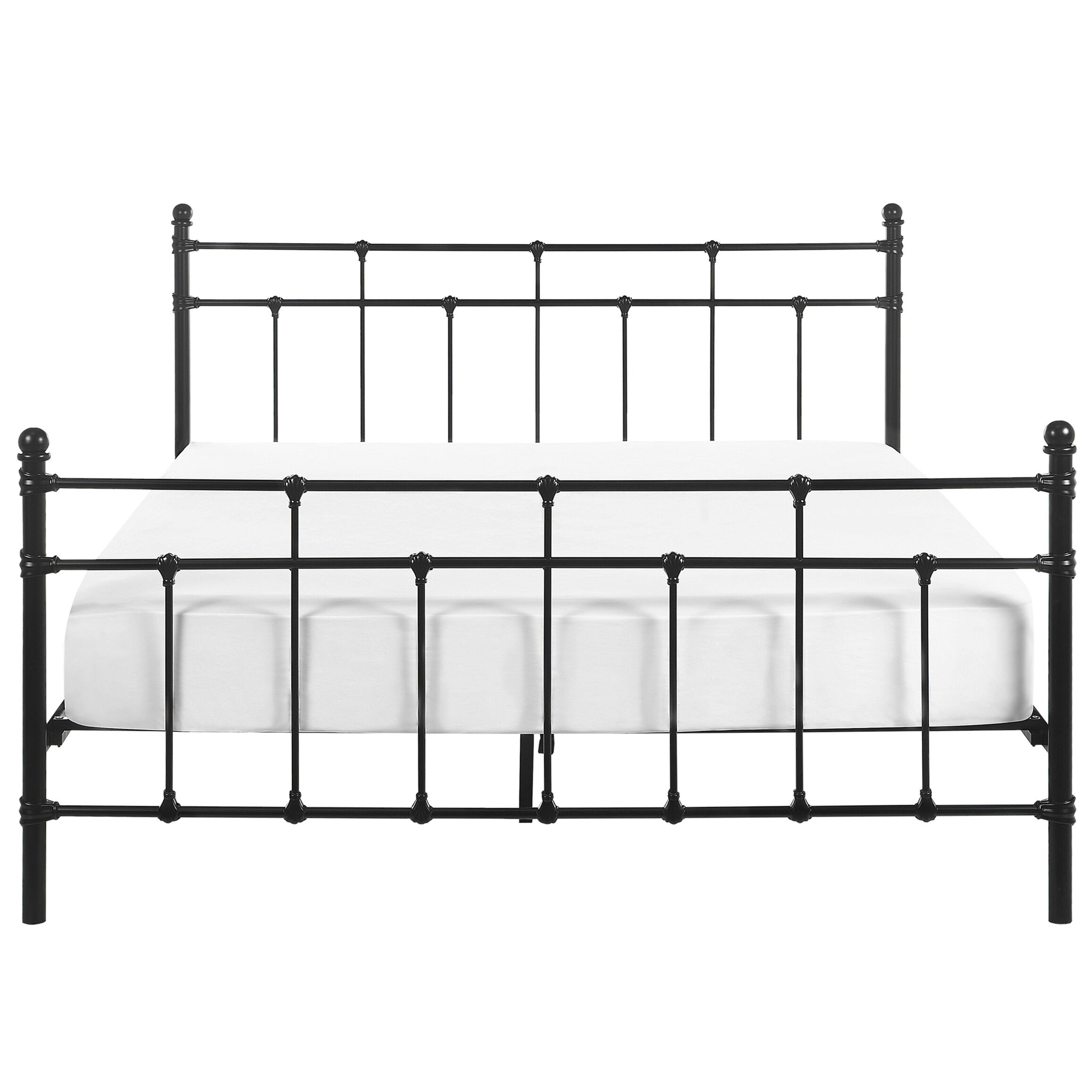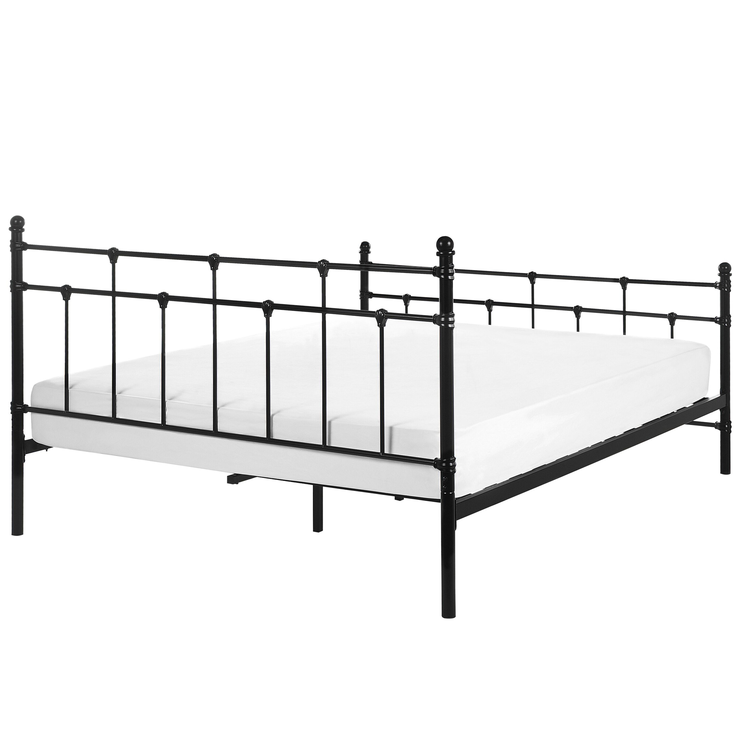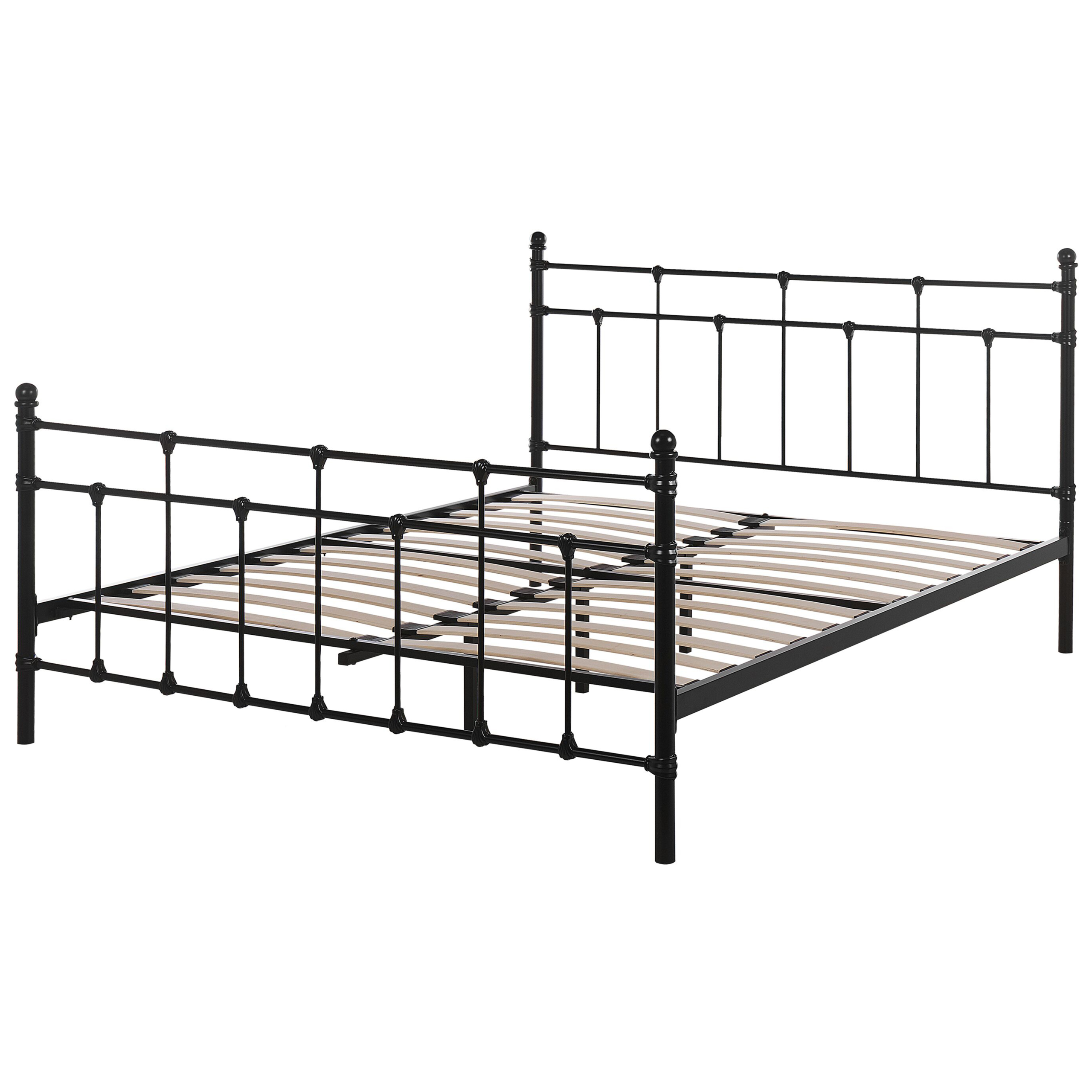 Lit deux places métallique. Ce lit noir attire tous les regards avec son design simple et son élégance pure. Fabriqué en métal de haute qualité, il constitue une pièce d'accent pour chaque chambre à coucher. Le lit est doté d'une tête de lit haute pour le confort, et d'un pied de lit haut pour compléter le design. Le cadre de la tête de lit embelli, associé à des montants à extrémité sphérique, ajoute une touche de style. Le cadre stable et intégré est exceptionnellement confortable et durable.