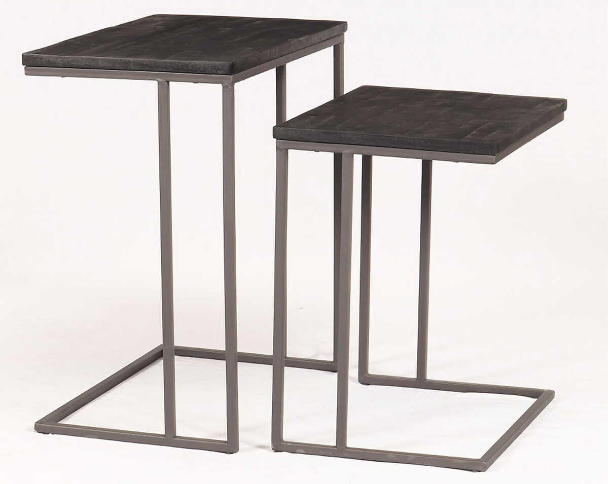 Table d'appoint en teck recyclé et métal, couleur gunmetal, grande table : 56x36x63 cm, petite table : 46x36x52 cm