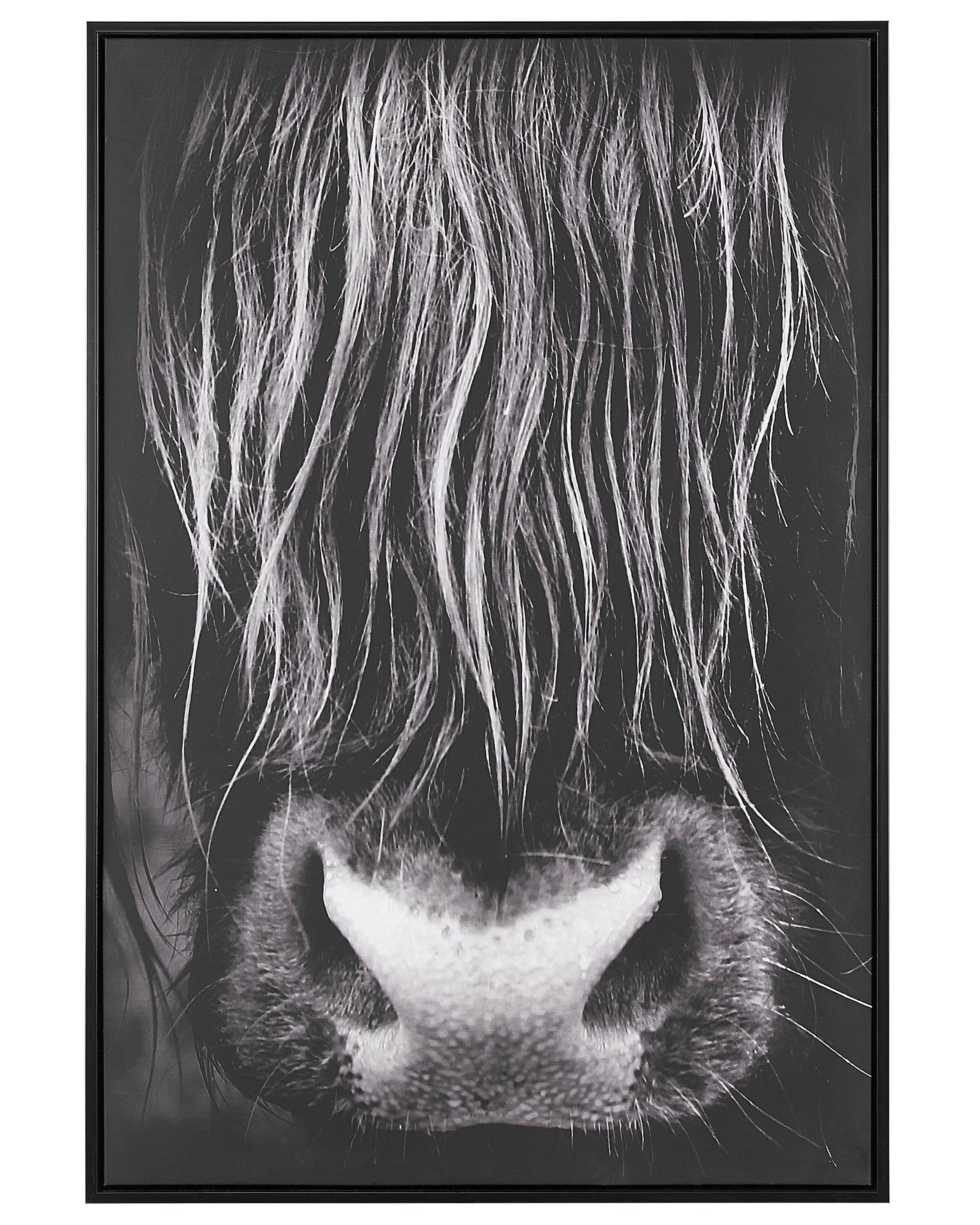 Tableau d'art contemporain noir et blanc encadré motif vache . Cette toile imprimée est une representation artistique d'une tête de vache en noir et blanc, idéale pour les intérieurs modernes, scandinaves et industriels. Accroché seul au-dessus de votre lit ou accompagné d'autres images et reproductions dans un mur de cadres dans votre salon, ce tableau tendance deviendra sûrement un accent fort de votre décor. Dotée d'un cadre assorti, cette toile d'art contemporain peut être accrochée au mur rapidement grâce aux deux crochets à son dos. Un incontournable pour tous les amateurs du moderne et des animaux.