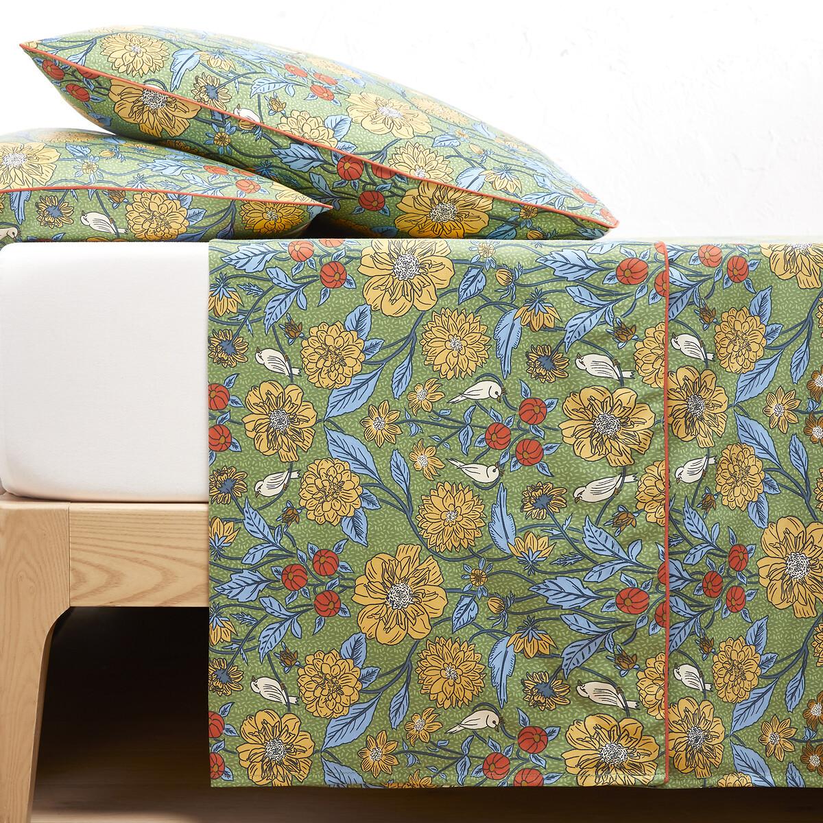 Le drap plat Johanna, confectionné en satin de coton, présente un bouquet de fleurs en variations multicolores. Le passepoil contrastant rehausse l'éclat des teintes du motif floral. Une création signée La Redoute Intérieurs.