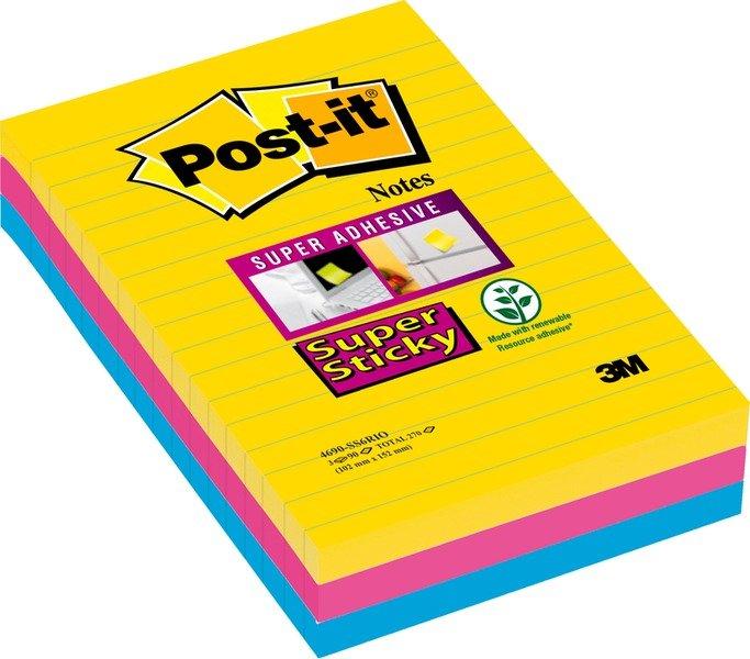 Post it, POST-IT SuperSticky Rio 152x101mm 4690SS3RI 3-farbig, liniert 3x90 Blatt