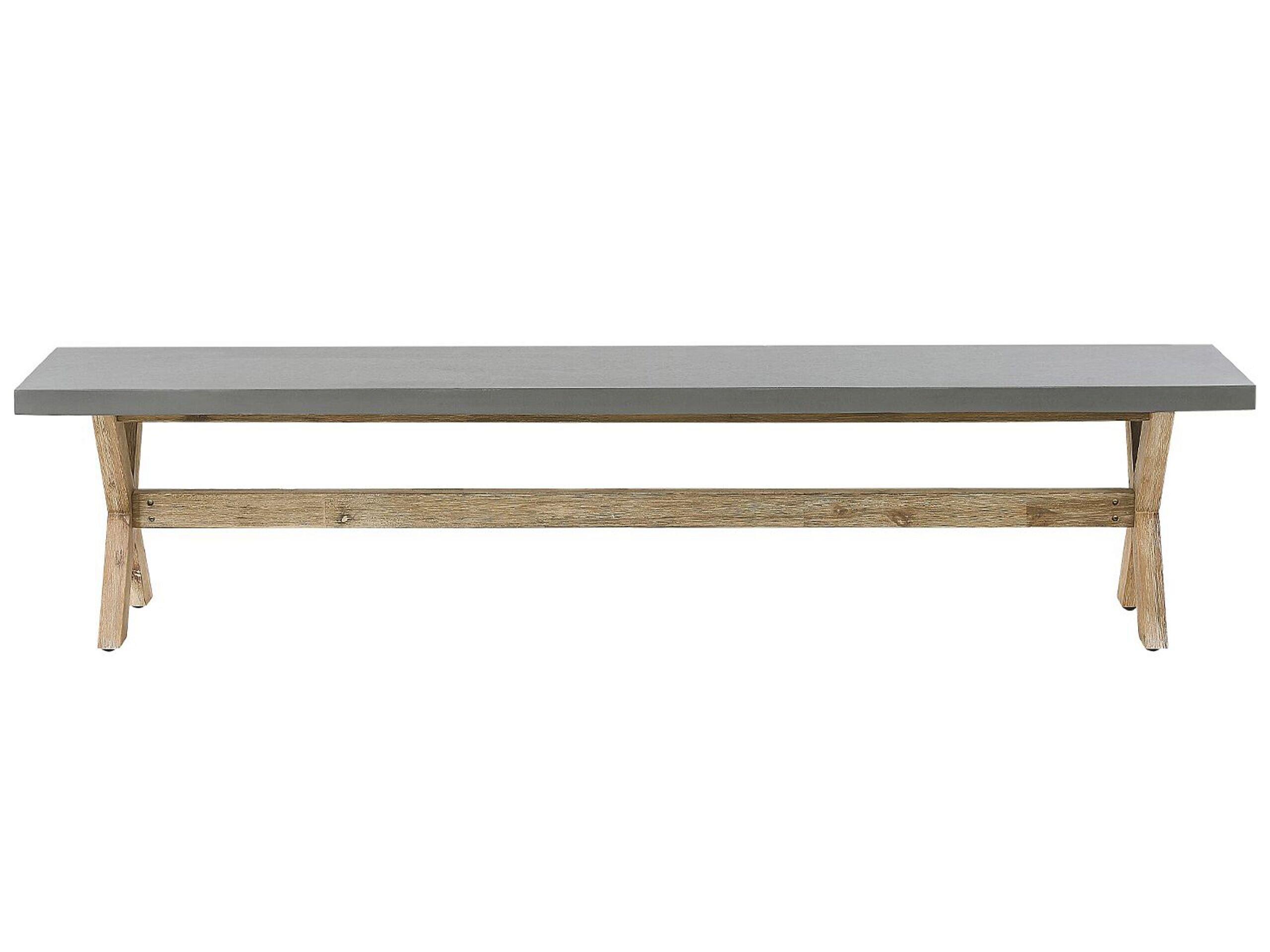 Banc d'extérieur. Préparez votre jardin pour les réunions et les fêtes d'été avec ce banc. Fabriqué en fibrociment, il peut résister aux changements de temps et à la pluie, tout en étant facile à nettoyer. Il peut accueillir jusqu'à 3 personnes, ce qui signifie que vous ne manquerez jamais d'espace pour vos invités. Son plateau gris est mis en valeur par une base en bois d'acacia durable de couleur plus claire. Son design épuré et minimaliste en fait un ajout parfait à presque tous les types d'espaces extérieurs, des patios d'inspiration rétro aux patios modernes et contemporains.