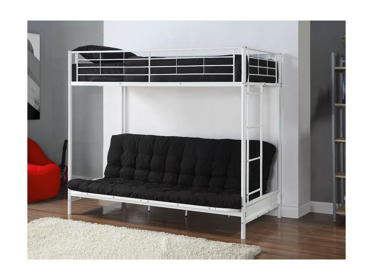 Vente-unique Lit mezzanine 90 x 190 cm - Avec banquette convertible - Métal - Blanc + Futon noir - MODULO V