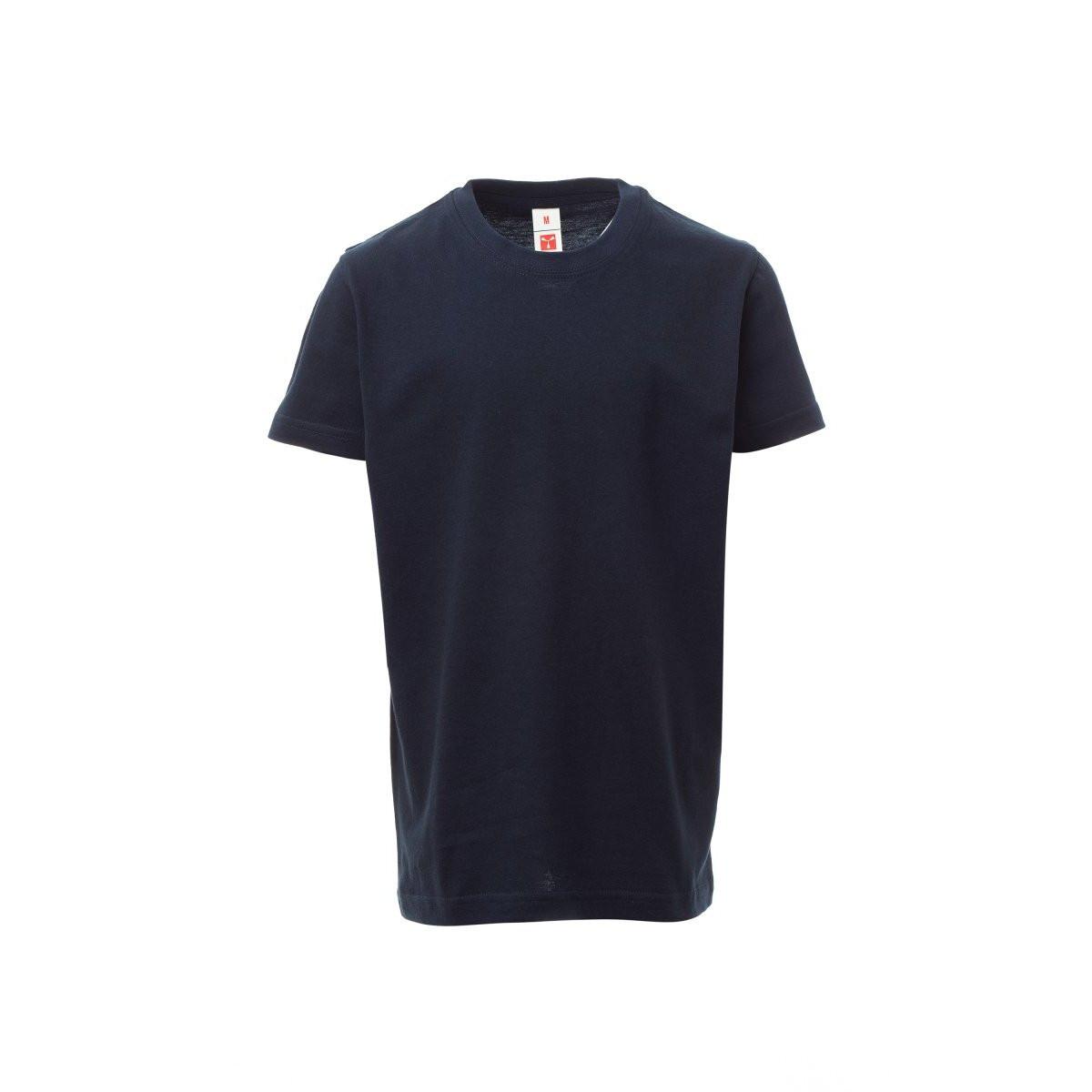Tee-shirt pour enfant, encolure ras le cou, manches courtes, col en bord côtes mixte spandex de 1,5 cm avec couture rabattue sur le devant, structure tubulaire.