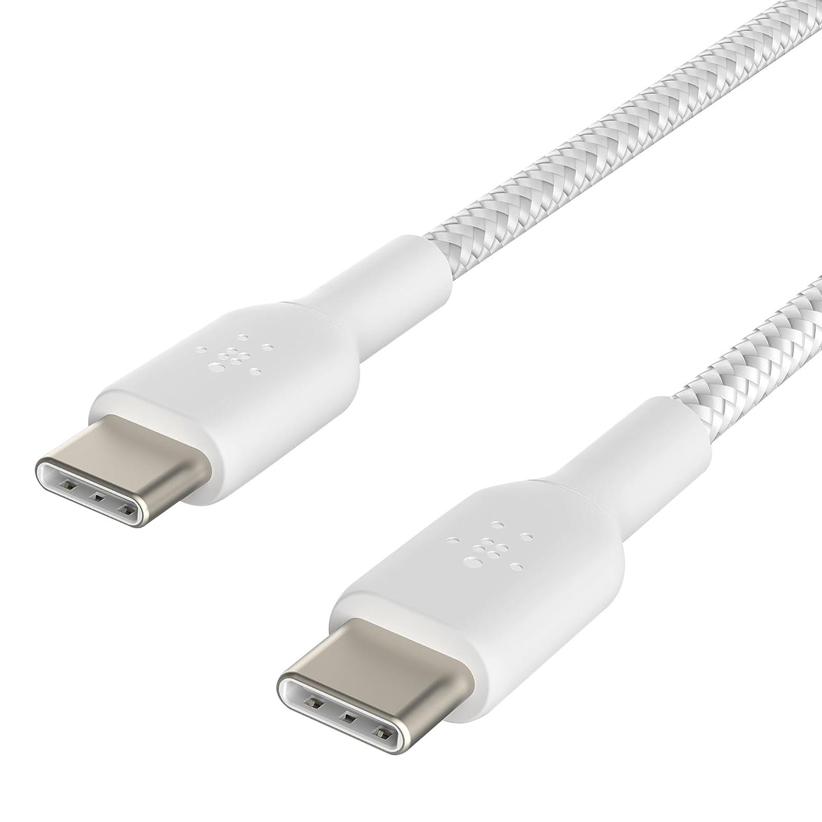 Pack de 2 câbles blanc, série BoostCharge de la fameuse marque Belkin pour alimenter vos smartphones, tablettes, iPad, etc. Connecteur USB C Power Delivery 60W assurant une recharge ultra-rapide à 50% en 30min, de vos appareils compatibles avec la technologie Puissance optimale pouvant alimenter votre ordinateur portable ou MacBook Branchement facile sur tout type de chargeur USB-C : secteur, un powerbank, un chargeur voiture ou Hub (non inclus)