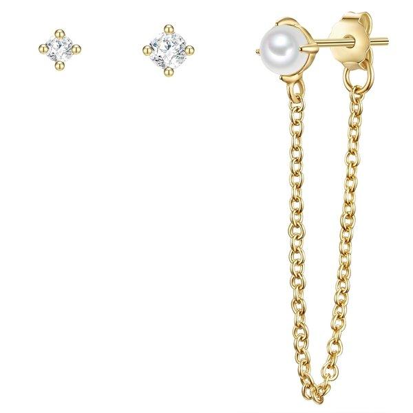 Trois bouchons - nombreuses options de combinaison: vous aimez les boucles d'oreilles modernes et polyvalents? Ensuite, vous rencontrez cet ensemble de l'étiquette met en évidence Munich un bon choix! Les trois bouchons différentes harmonisent parfaitement les uns avec les autres et peuvent être portés différemment, en fonction du nombre de trous d'oreille que vous avez et si vous aimez le look empilable. Une bougie avant est décorée d'une chaîne délicate et d'une perle d'eau douce, les deux bouchons simples inspirent avec la paillette de zircone à facettes. Fabriqué en argent sterling 925 et fini d'or jaune, les bouchons gardent leur oreillette d'or chaude longue. Une pièce informatique pour les fashionistas!
