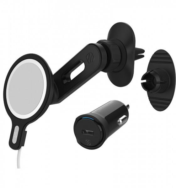 Le MagicMount MSC 4-en-1 est la solution parfaite pour convertir votre chargeur Apple MagSafe en un Wireless Charging Mount. L'adaptateur auto Power-Delivery USB-C 20 W fournit suffisamment de courant au MagSafe pour charger un iPhone 12 sans fil avec 15 W. Ce produit offre quatre possibilités de fixation : Swing-Arm Dash, Free-Flow Vent, Lock-Nut Dash et Lock-Nut Vent. Le Swing-Arm Dash vous permet d'éloigner votre téléphone de la bouche d'aération de votre véhicule. Les options Lock-Nut vous permettent d'ajuster la tête du support à l'angle de vue parfait et de la fixer à l'aide d'un contre-écrou. Le chargeur MagSafe n'est pas inclus.