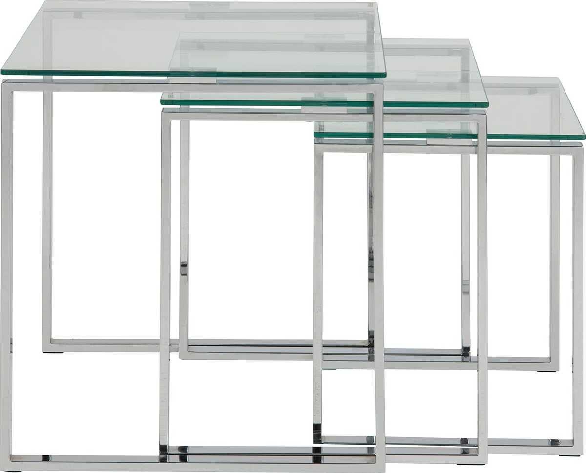 Catherine Ensemble plateau de table en verre clair 8 mm, ensemble de 3 pièces piétement chromé L:50 L:50 H:55 cmMutoni Scandi - la nouvelle tendance maintenant disponible en Suisse. Des produits exclusifs à des prix imbattables. Laissez-vous inspirer par la diversité de notre collection. Mutoni Scandi dispose d'un large assortiment sur le salon, la cuisine, la chambre à coucher et le vestibule.Surface Matériau du plateau : verre trempéMatériau du plateau : verreMatériau de base des pieds : métalTraitement de surface du plateau : verre trempéForme de la table : carréeForme du bord de table : droite Type de pieds : rectangulairesÉpaisseur du plateau supérieur (mm) : 8Max. Capacité de charge de la surface principale (kg) : 20Dimensions individuelles pour les articles en kit : 50 x 50 x 55, 43 x 43 x 50, 36 x 36 x 45Hauteur des pieds (cm) : 54.2Traitement de surface des pieds : chromeCouleur du plateau : clairCouleur des pieds : chrome