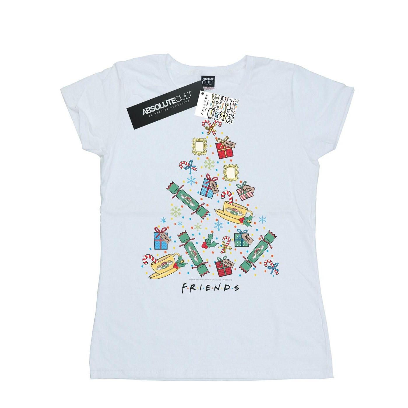 Ce T-shirt présente un imprimé graphique festif inspiré de la série télévisée emblématique. Le design met en scène un arbre de Noël composé de divers éléments de vacances et d'articles sur le thème de Friends, y compris le célèbre cadre photo et les tasses à café.