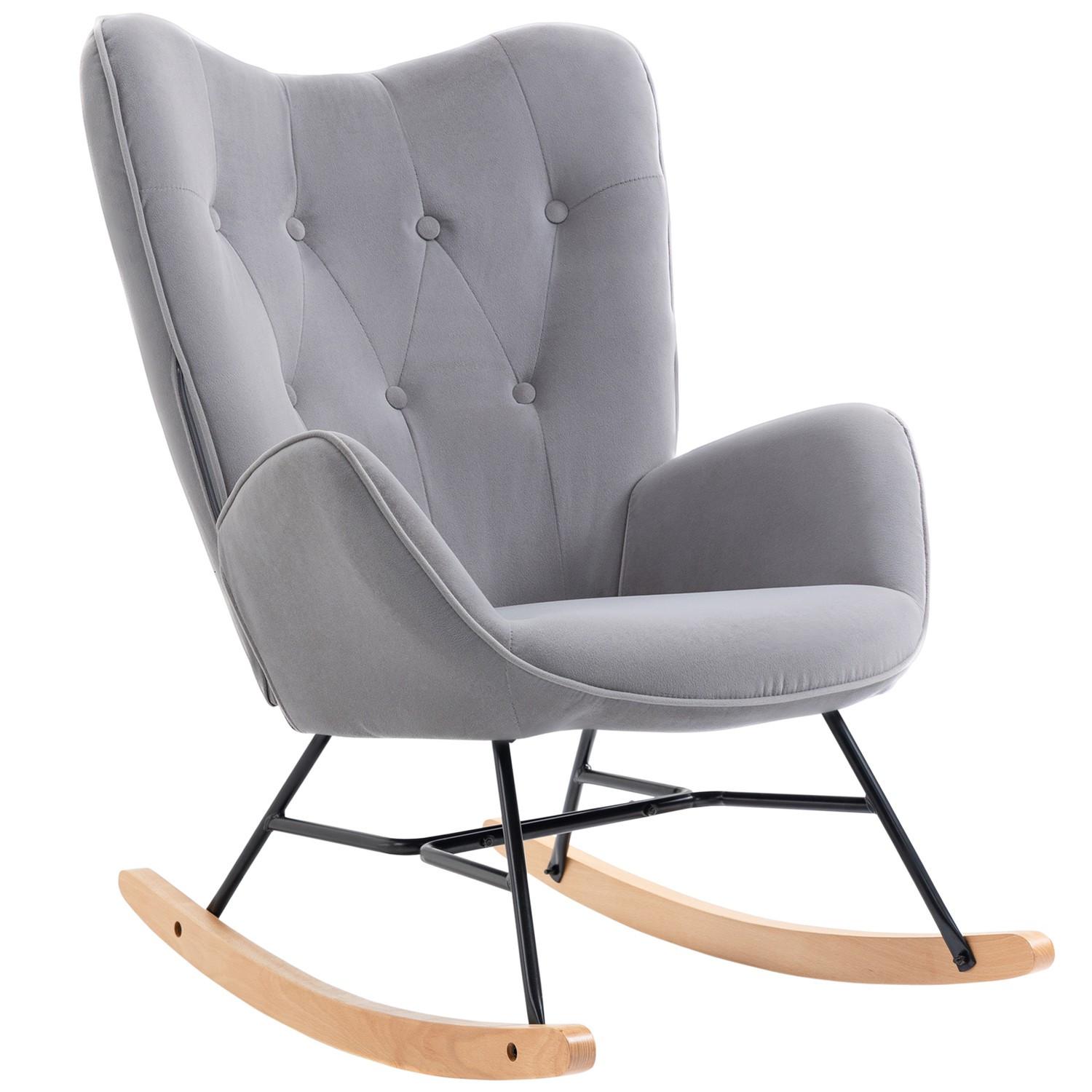 Northio Fauteuil à bascule, balançoire ergonomique, fauteuil, chaise d'allaitement aspect velours, fauteuil à bascule pouvant supporter jusqu'à 150 kg, pour chambre à coucher, salon, gris clair