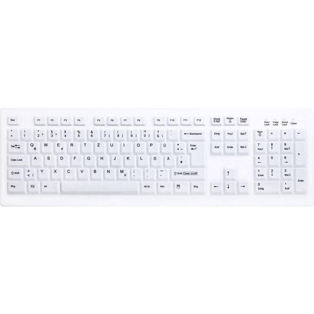 Clavier PC infiable pour une pureté et une hygiène accrues Le AK-C8100 est un clavier PC de haute qualité, puissant et fiable. En raison de sa capacité de nettoyage et de désinfection, il est particulièrement adapté pour une utilisation dans les hôpitaux, les cabinets médicaux et les laboratoires de biologie. La membrane en silicone protège le clavier et le clavier contre la pénétration de saletés et de liquides. Le AK-C8100 séduit par sa frappe agréable et son guide de touches précis. Avec sa disposition standard des touches PC, le AK-C8100 est un clavier multi-enregistreur efficace dans un environnement hygiénique.