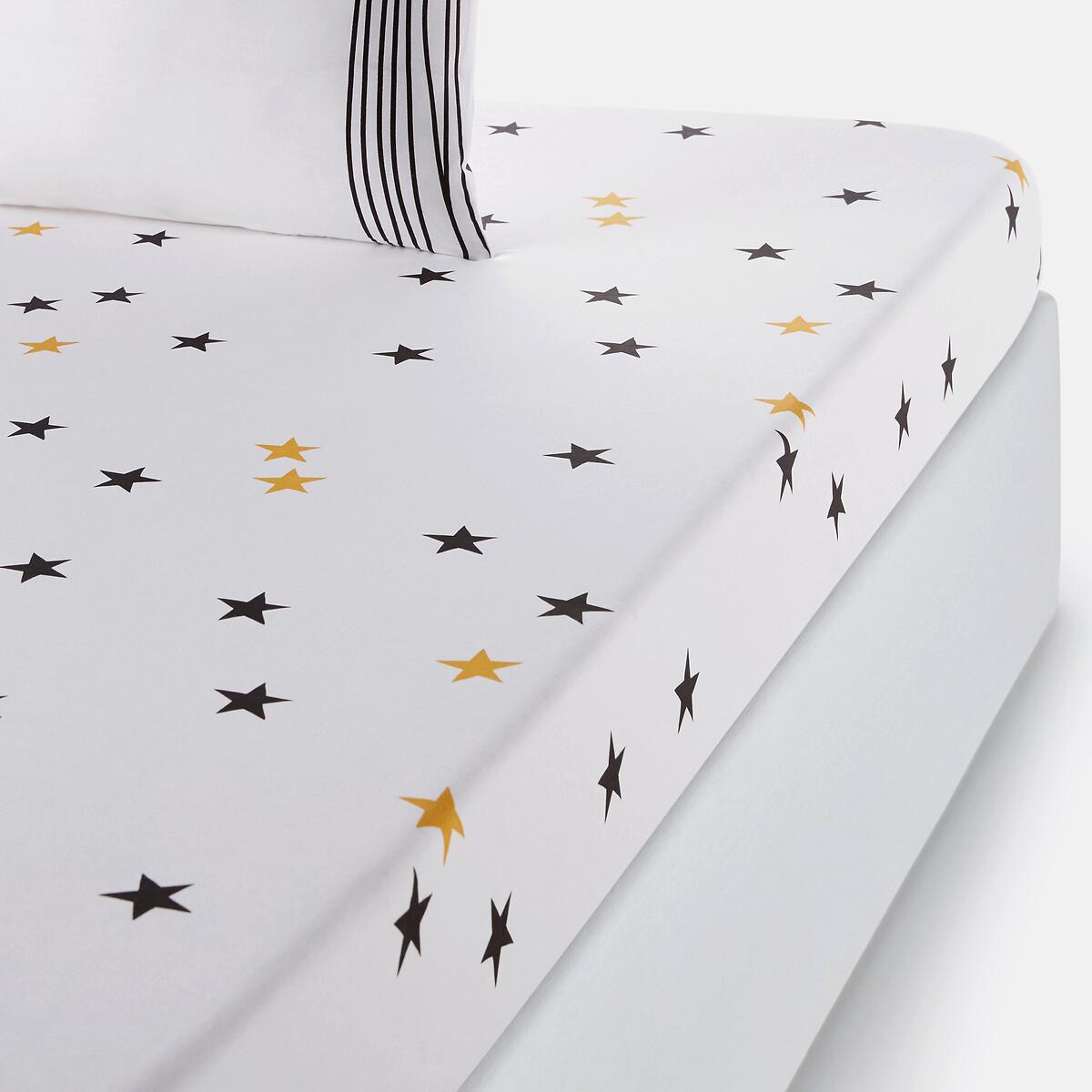 Ce drap housse présente un motif d'étoiles ludique, ajoutant une touche de charme à toute chambre à coucher. Fabriqué en pur coton, il offre une sensation douce et confortable pour une nuit de sommeil réparatrice.
