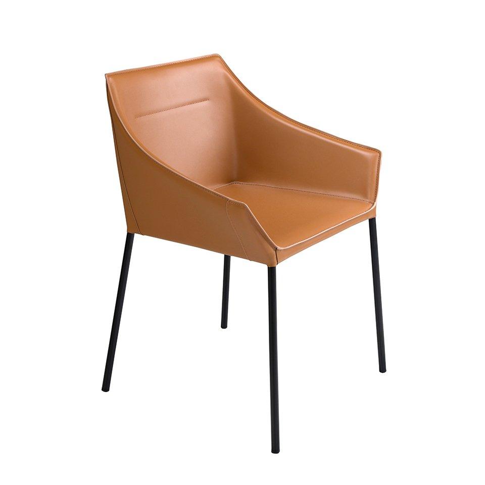 Chaise au design moderne avec assise et dossier en similicuir marron. Ses pieds en acier inoxydable noir mat au style à la fois avant-gardiste et intemporel en feront un élément incontournable de votre cuisine ou de votre salle à manger. Cette chaise d'Angel Cerdá allie le style unique et personnel de la marque, ainsi que le plus grand confort et la plus grande stabilité, grâce à la haute qualité de son rembourrage et à la structure originale de ses pieds.