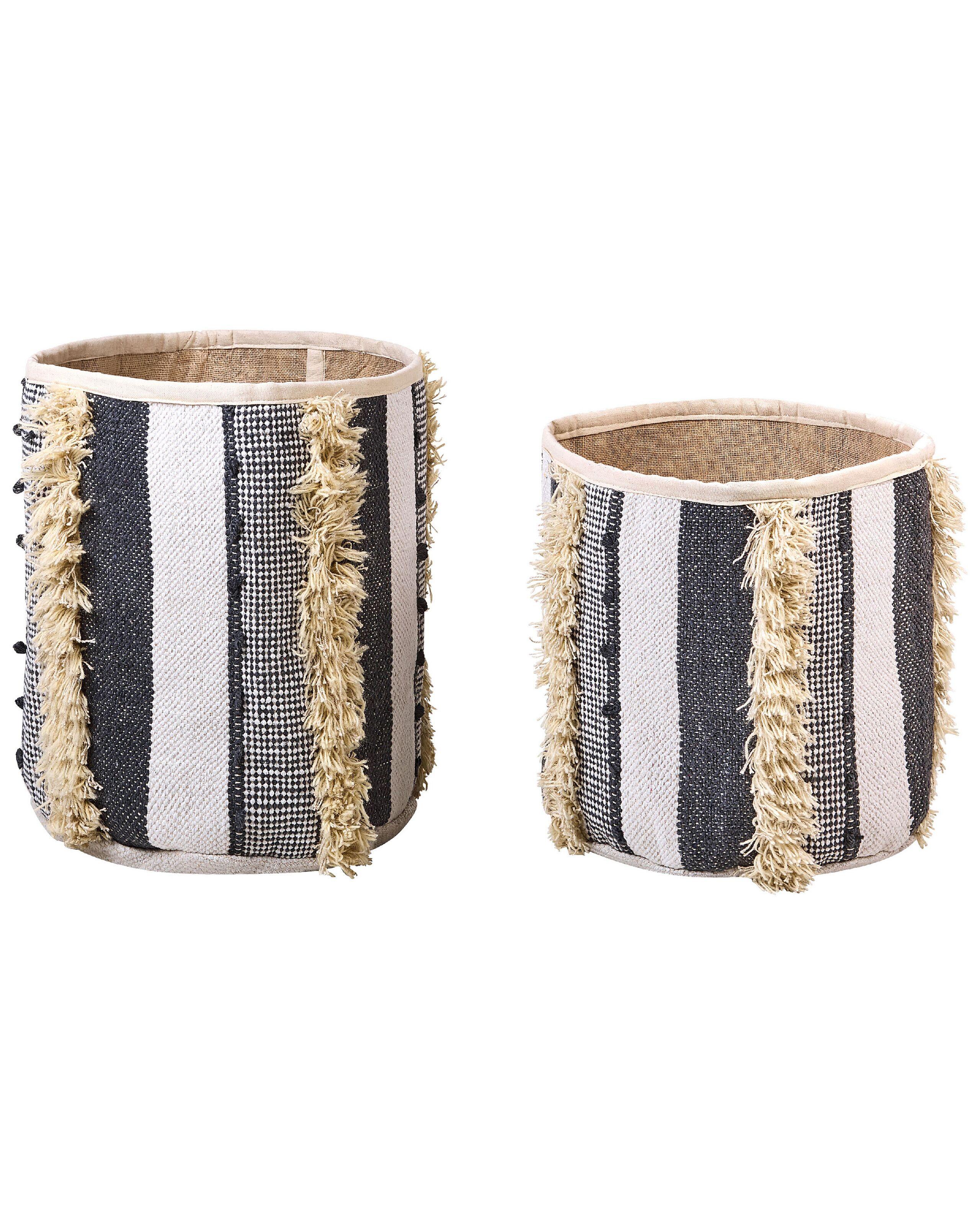 Duo de paniers en coton fait à la main. Décorez n'importe quelle pièce avec style grâce à cet ensemble de paniers de rangement. Fabriqués à la main en coton doux et durable de haute qualité, ils sont parfaits comme accessoires pour le salon ou la chambre d'enfant, mais aussi dans la salle de bains comme paniers à linge. Les franges décoratives ajoutent une jolie touche bohème.
