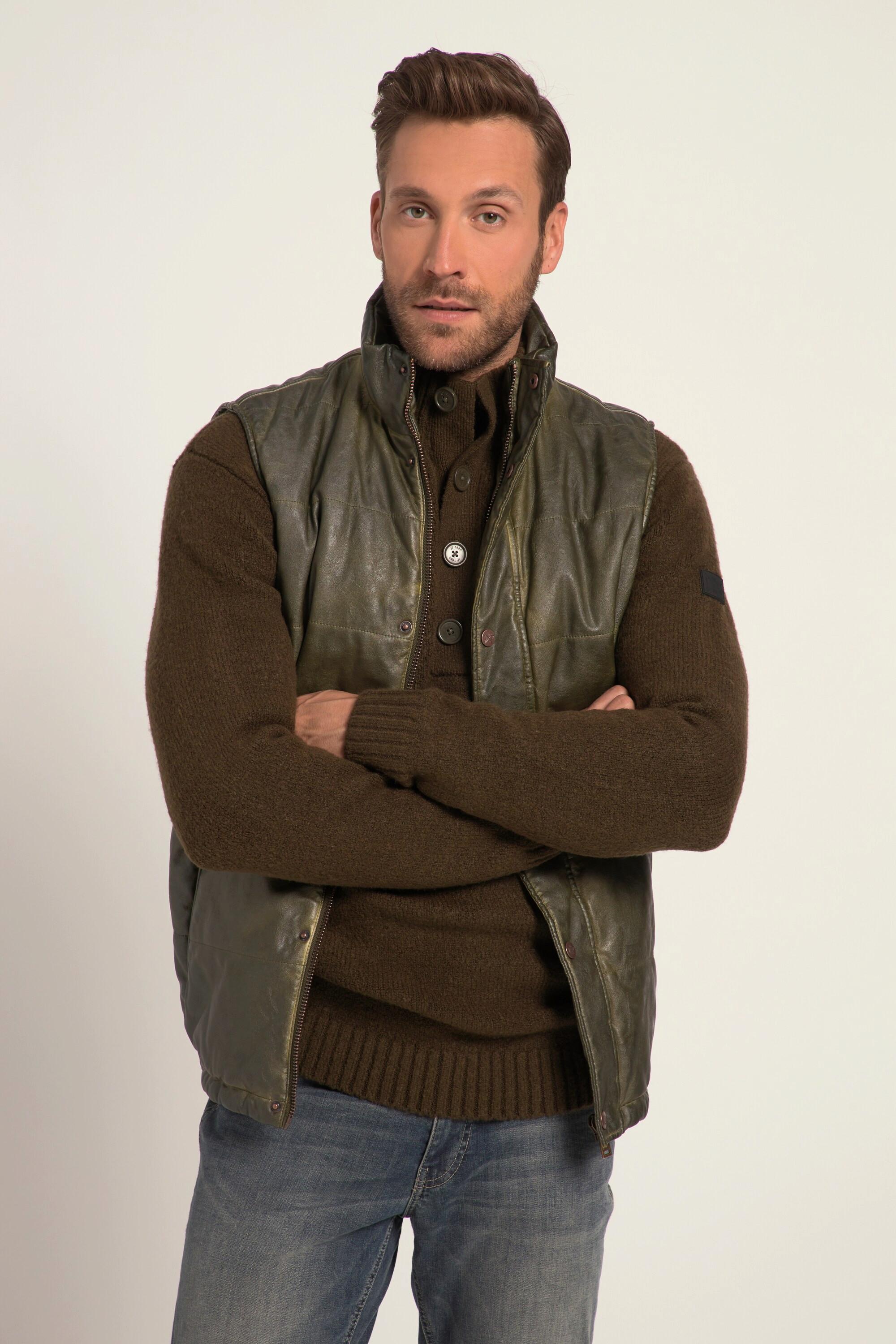 JP1880 Gilet Matelassé Outdoor Effet Cuir Vintage Col Montant