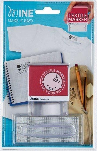 TextstempelDer Colop Mine Textilmarker mit wasserfester Tinte zum Markieren von Kleidung, Schuhe, Büchern und andere Oberflächen.Erstellen Sie Ihren eigenen Wunschtext in Sekunden und markieren Sie alles mit nur einem Abdruck.praktisch für KITA, Kindergarten, Sportverein, Schule und für viele andere AnwendungenFür dunkle Kleidung ist im Set ein Thermoband (1m) inklusive.wasserfeste Tinte.