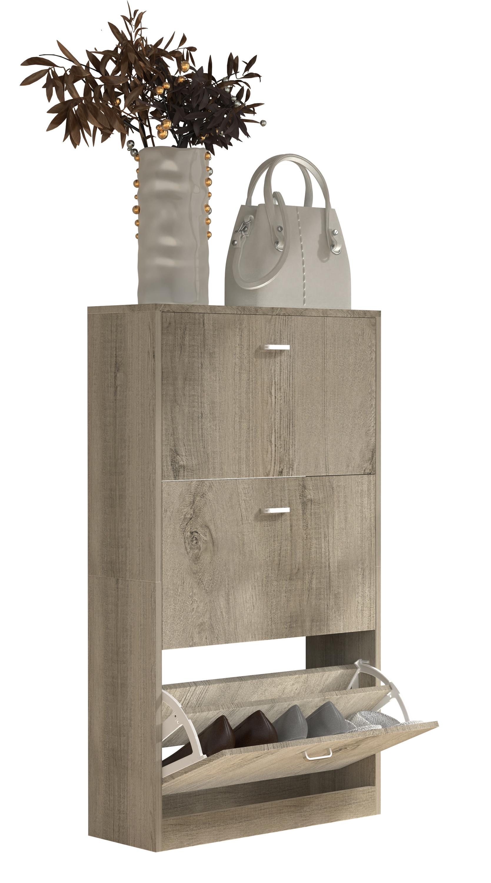 VCM, Étagère en bois Kipper Étagère à chaussures Armoire à chaussures Basculement de chaussures 3 abattants Sipos