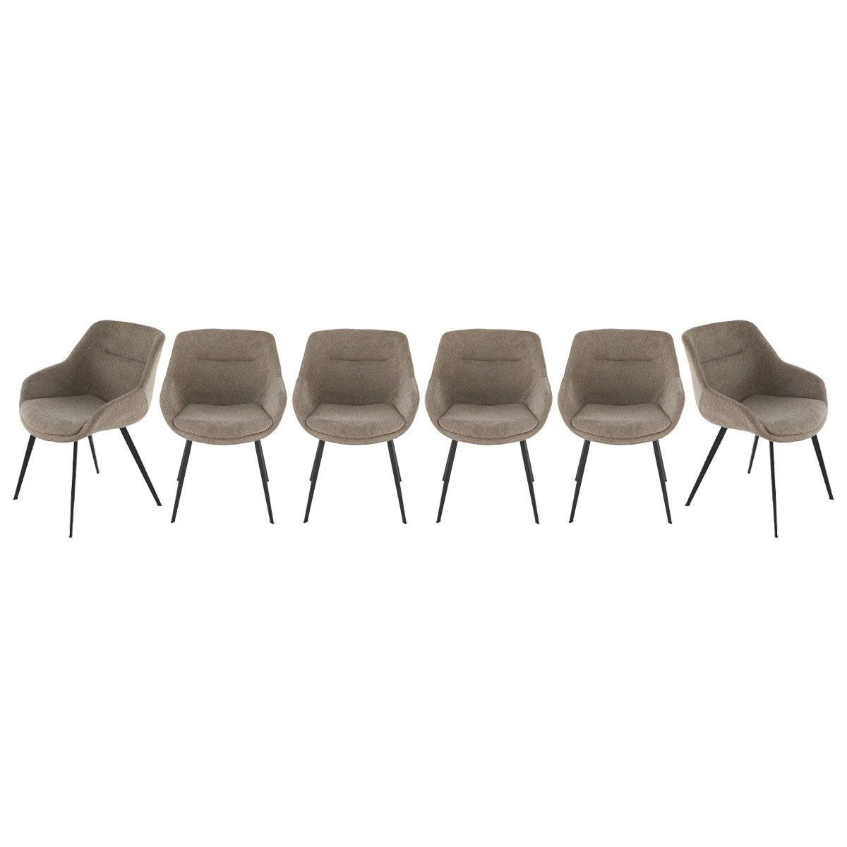 Calicosy Lot de 6 fauteuils bridge en tissu taupe - COLOMBE