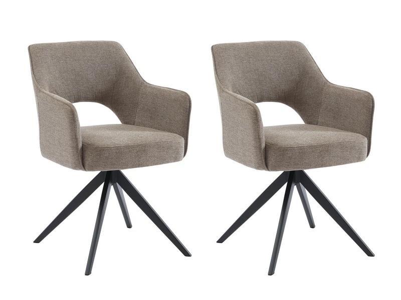 Vente-unique, Lot de 2 chaises pivotantes avec accoudoirs en tissu et métal - Taupe - KONYA
