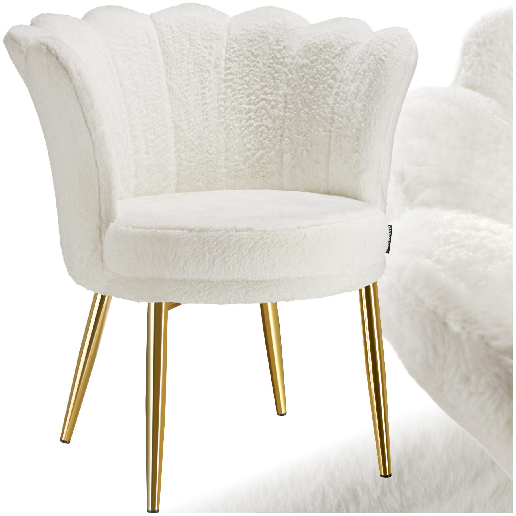 Le fauteuil Stella de tectake allie un design raffiné à un confort optimal. Son dossier en forme de fleur, large et accueillant, attire tous les regards, tandis que son revêtement en fausse fourrure offre une douceur irrésistible au toucher.