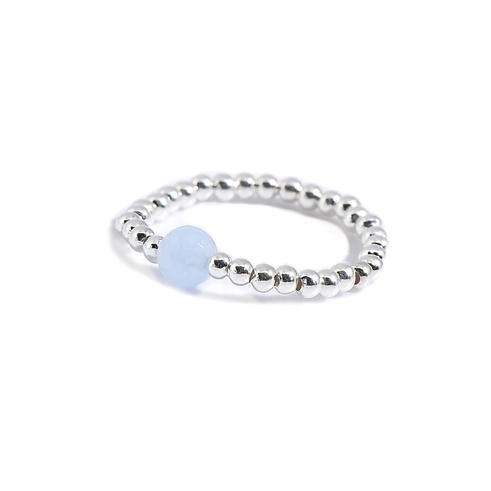 Cette magnifique bague pour femme allie la beauté naturelle d'une pierre d'amazonite facettée à la délicatesse des perles en argent sterling 925. Grâce à son anneau élastique, elle s'adapte à toutes les tailles de doigt et offre un confort exceptionnel : légère, confortable et presque imperceptible.
