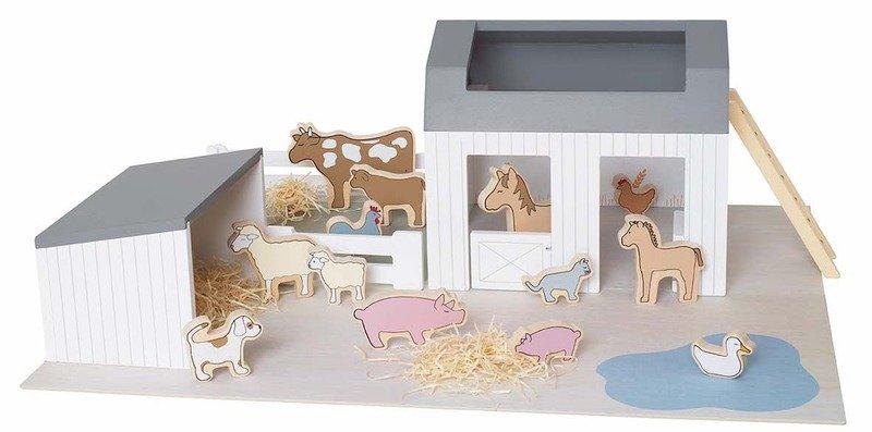 Bauernhaus Ein wunderschönes Bauernhaus aus Holz lädt zum spielen ein. Das Bauernhaus wird komplett montiert geliefert und kann gleich zum spielen benutzt werden. Im Hof hat es einen kleinen Stall in dem zum Beispiel Pferde stehen können. Das Bauernhaus wird ohne Tiere geliefert.